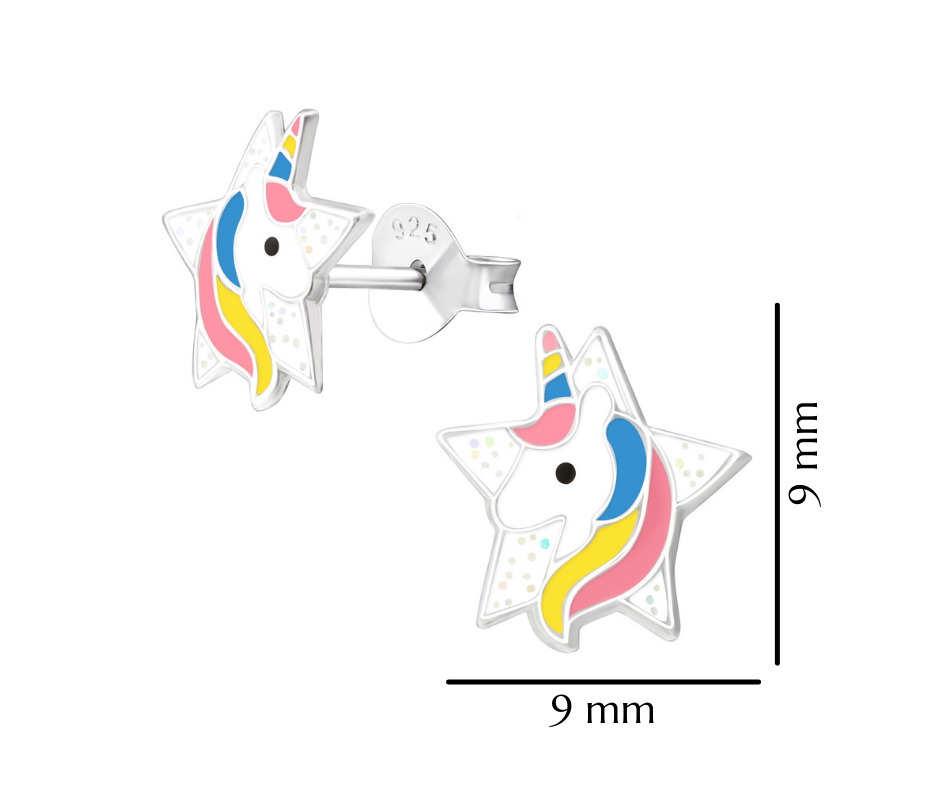 Srebrne kolczyki jednorożce dla dzieci 925 wkrętki