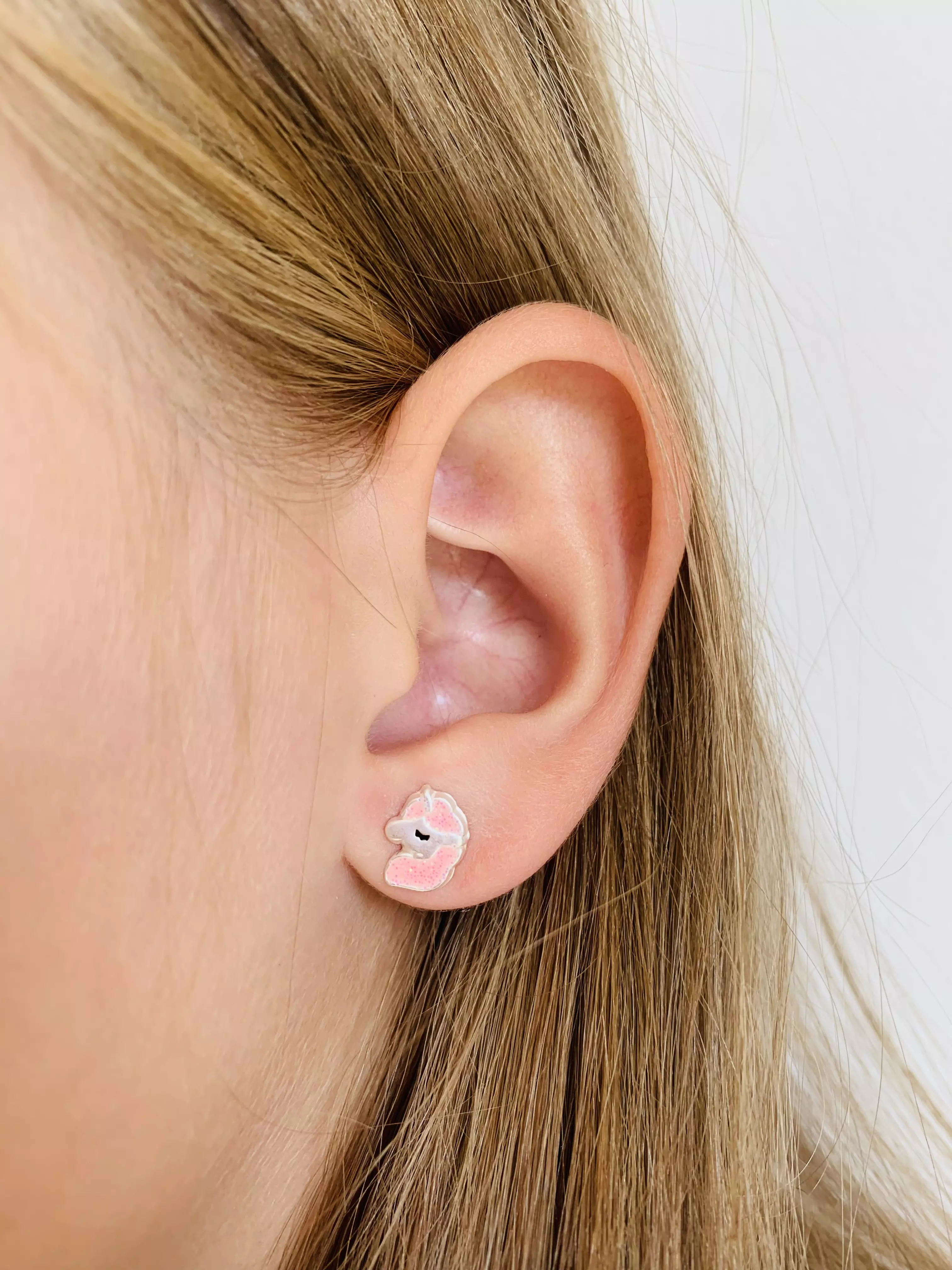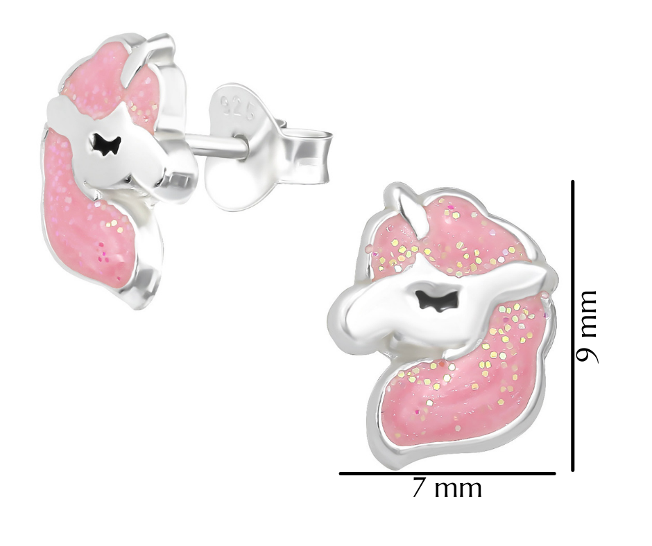 Urocze srebrne kolczyki jednorożce dla dzieci, wykonane zostały ze srebra próby 925, ozdobione różową emalią z brokatem. Kolczyki posiadają zapięcie typu sztyft, które jest idealnie dostosowane do uszu dziecka. Kolczyki z motywem jednorożców to urocza i kreatywna biżuteria, która cieszy się dużą popularnością wśród dzieci, lubiące magię, fantazję i mitologiczne stworzenia. Jednorożce uważane są za symbol szczęścia, czystości i siły. Biżuteria srebrna jest doskonałą propozycją na prezent dla dzieci z okazji urodzin, imienin lub świąt. Kolczyki nie zawierają niklu, przez co nie uczulają i nie powodują reakcji alergicznej.