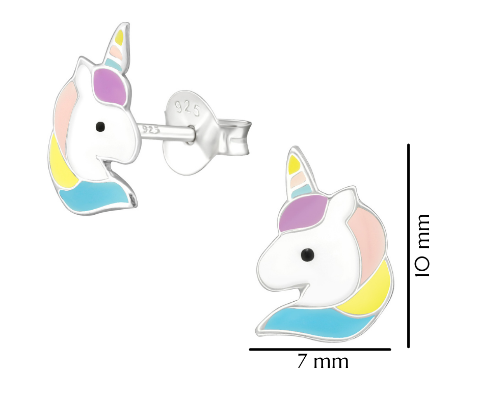 Srebrne kolczyki jednorożce dziecięce 925 sztyft