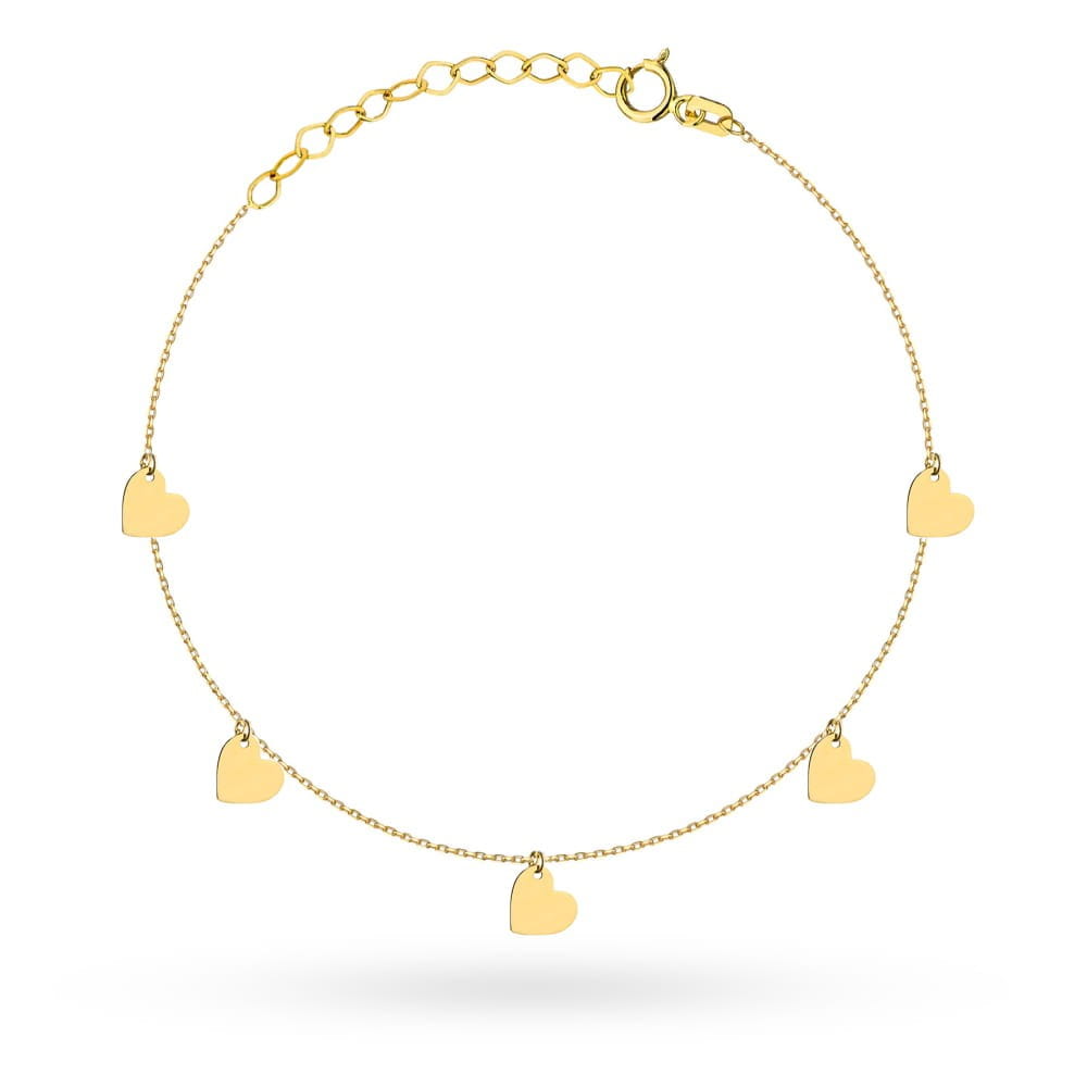 Bransoletka złota 585 na nogę pięć pełnych serduszek