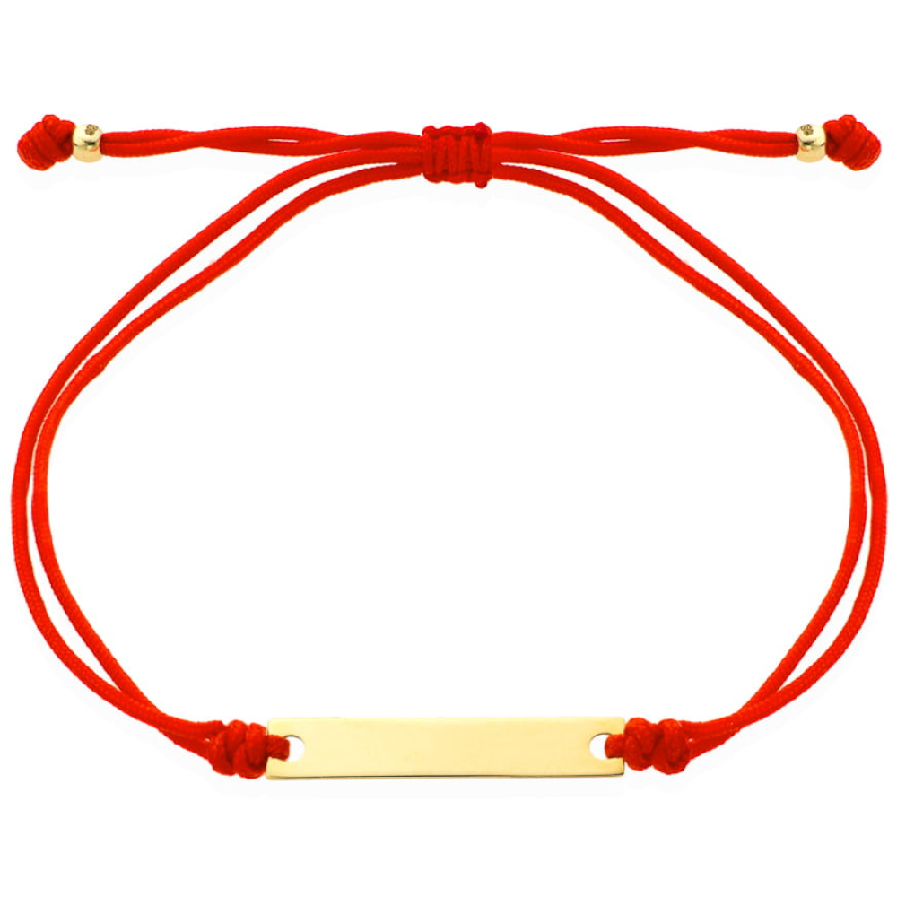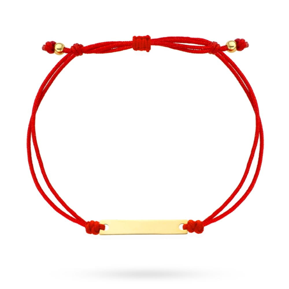 Bransoletka złota blaszka pod grawer na czerwonym sznurku