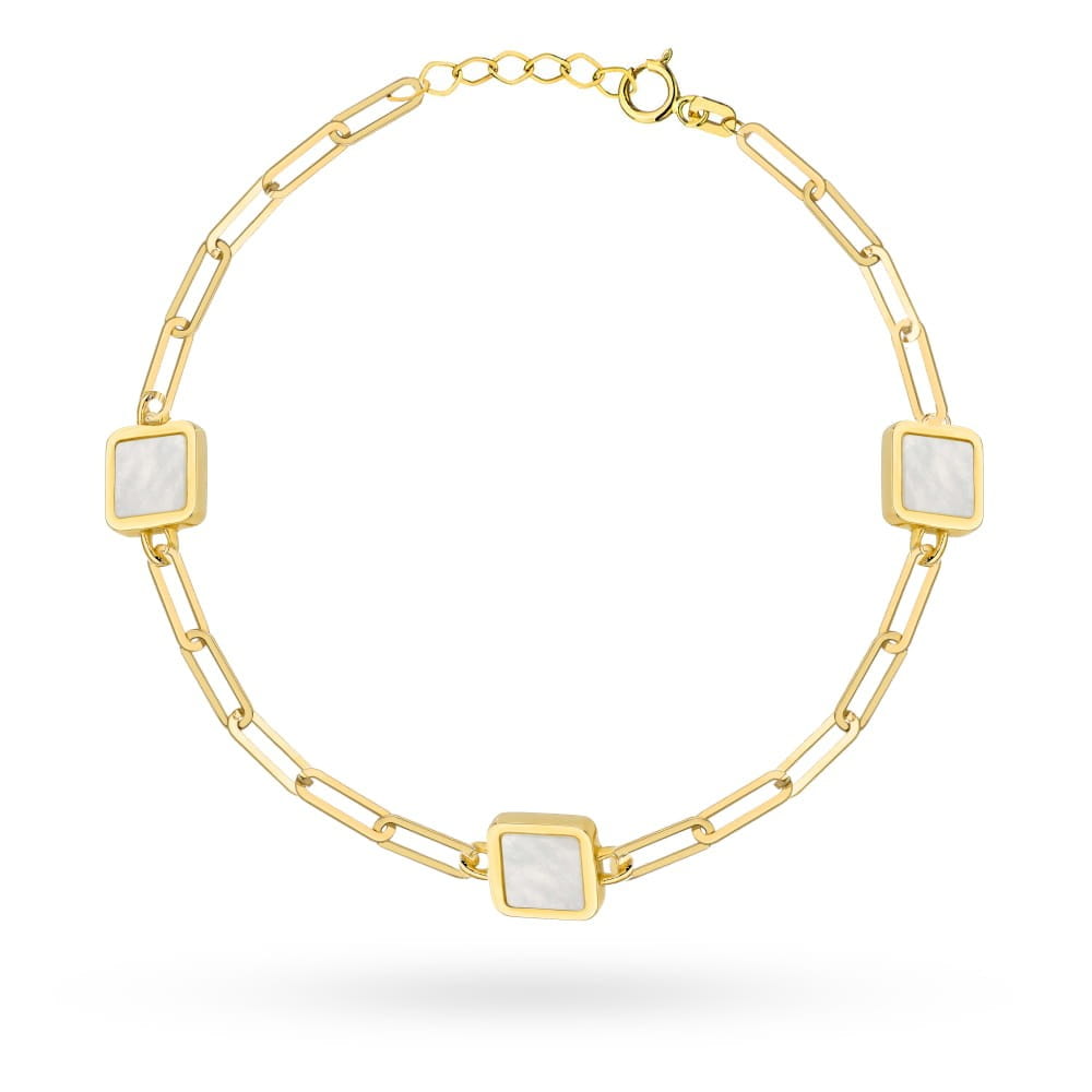 Bransoletka złota długie ogniwa i kwadraty z masą perłową