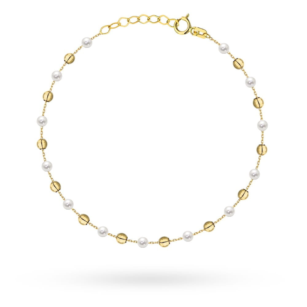 Bransoletka złota gładkie kulki i perły