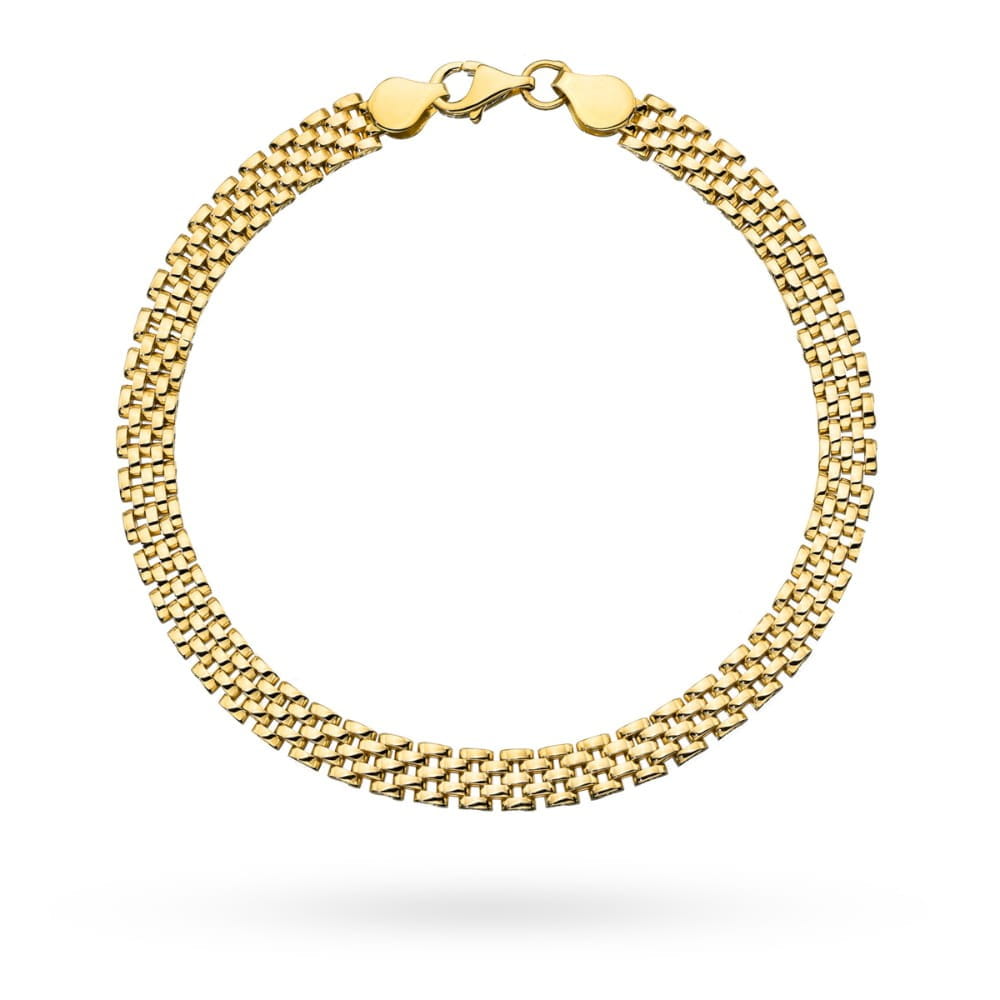 Rodzaj Pełna Długość [cm] 19-21,5cm Kamień Bez kamienia Wzór Ogniwa Materiał Złoto Próba złota 585 Kolor złota Żółty Szerokość ogniwa [mm] ok. 5 Elegancka i stylowa złota bransoletka próby 585. Doskonała jako prezent z okazji, imienin, urodzin, bierzmowania czy też innej ważnej uroczystości. Ozdoba eleganckiej kreacji. Zajmujemy się sprzedażą biżuterii ze złota. Sprzedajemy towary pochodzące od krajowych i zagranicznych producentów. Wszystkie produkty pochodzą z legalnego źródła. Wystawiamy faktury VAT.
