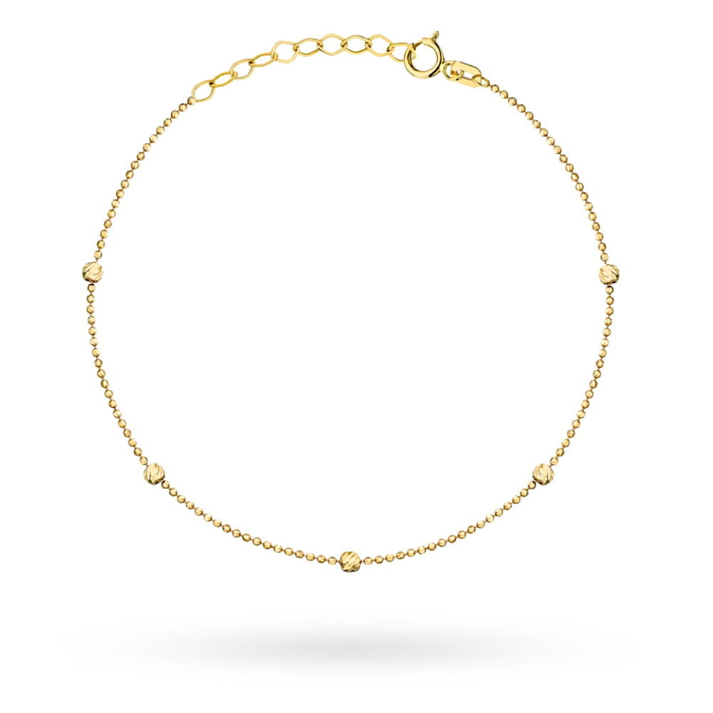 Bransoletka złota kulkowa z diamentowanymi kuleczkami na nogę