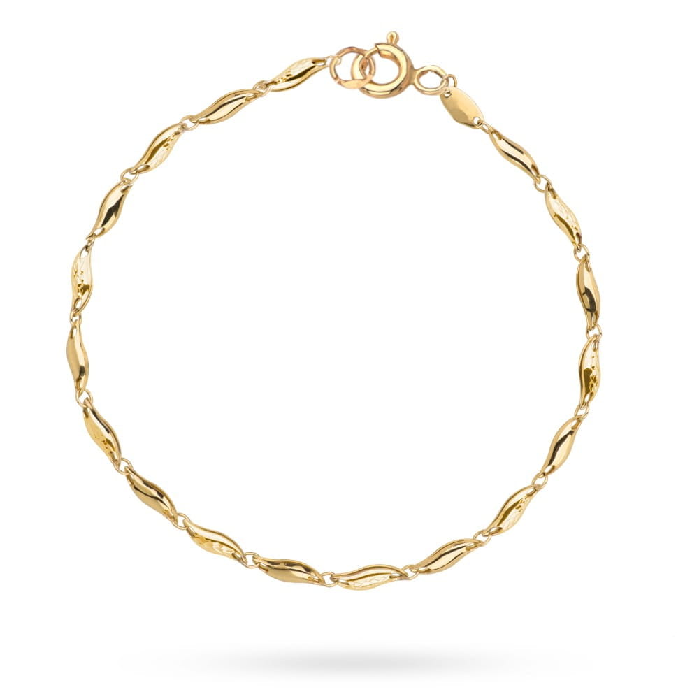Rodzaj Pełny Długość [cm] 19 Kamień Bez kamienia Wzór Listek Materiał Złoto Próba złota 585 Kolor złota Żółty Długość listka [mm] 8 Szerokość listka [mm] 2 Precyzyjnie wykonana złota celebrytka bransoletka próby 585 w dwóch kolorach złota. Doskonała na prezent dla bliskiej osoby na urodziny, imieniny czy inna okazję. Zajmujemy się sprzedażą biżuterii ze złota. Sprzedajemy towary pochodzące od krajowych i zagranicznych producentów. Wszystkie produkty pochodzą z legalnego źródła. Wystawiamy faktury VAT.