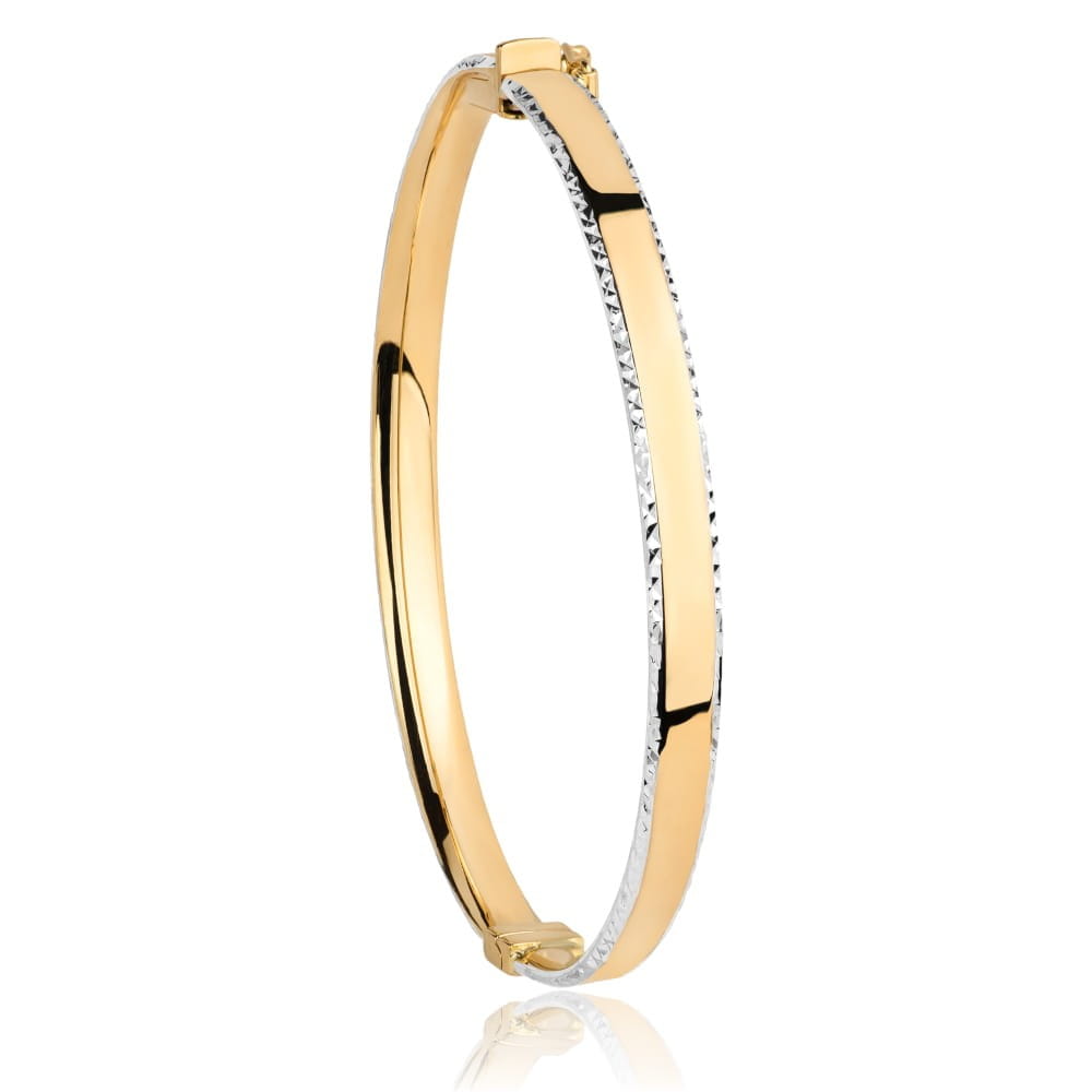 Bransoletka złota sztywna z diamentowaniem w białym złocie