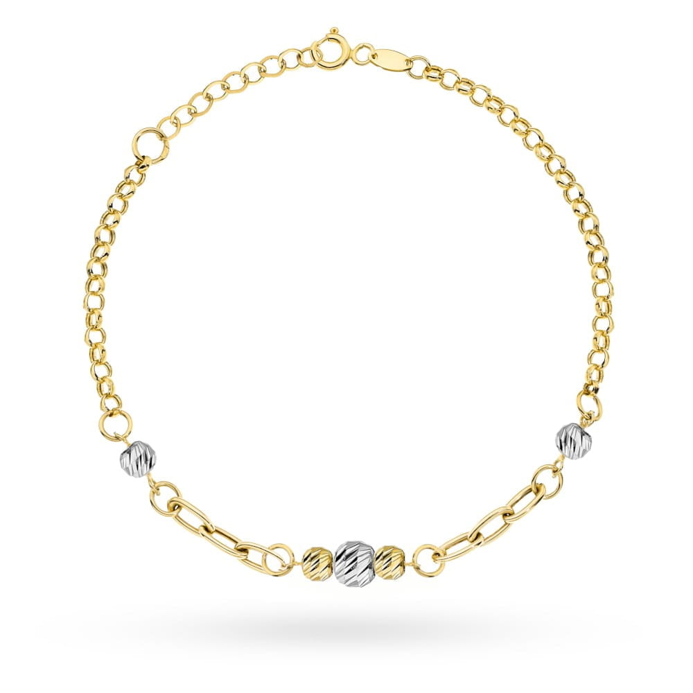 Bransoletka złota z owalami i diamentowanymi kulkami w dwóch kolorach złota