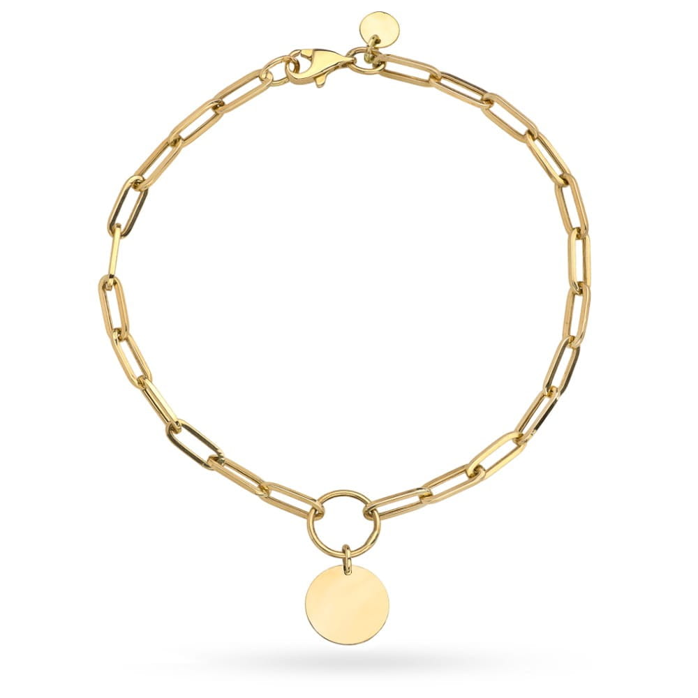 Rodzaj Pełny Długość [cm] 18,5 Kamień Bez kamienia Wzór Ogniwa Materiał Złoto Próba złota 585 Kolor złota Żółty Szerokość ogniwa [mm] 3 Długość ogniwa [mm] 8 Średnica kółka [mm] 10 Elegancka i stylowa złota bransoletka próby 585. Doskonała jako prezent z okazji, imienin, urodzin, bierzmowania czy też innej ważnej uroczystości. Ozdoba eleganckiej kreacji. Zajmujemy się sprzedażą biżuterii ze złota. Sprzedajemy towary pochodzące od krajowych i zagranicznych producentów. Wszystkie produkty pochodzą z legalnego źródła. Wystawiamy faktury VAT.