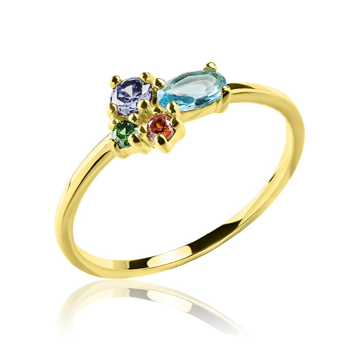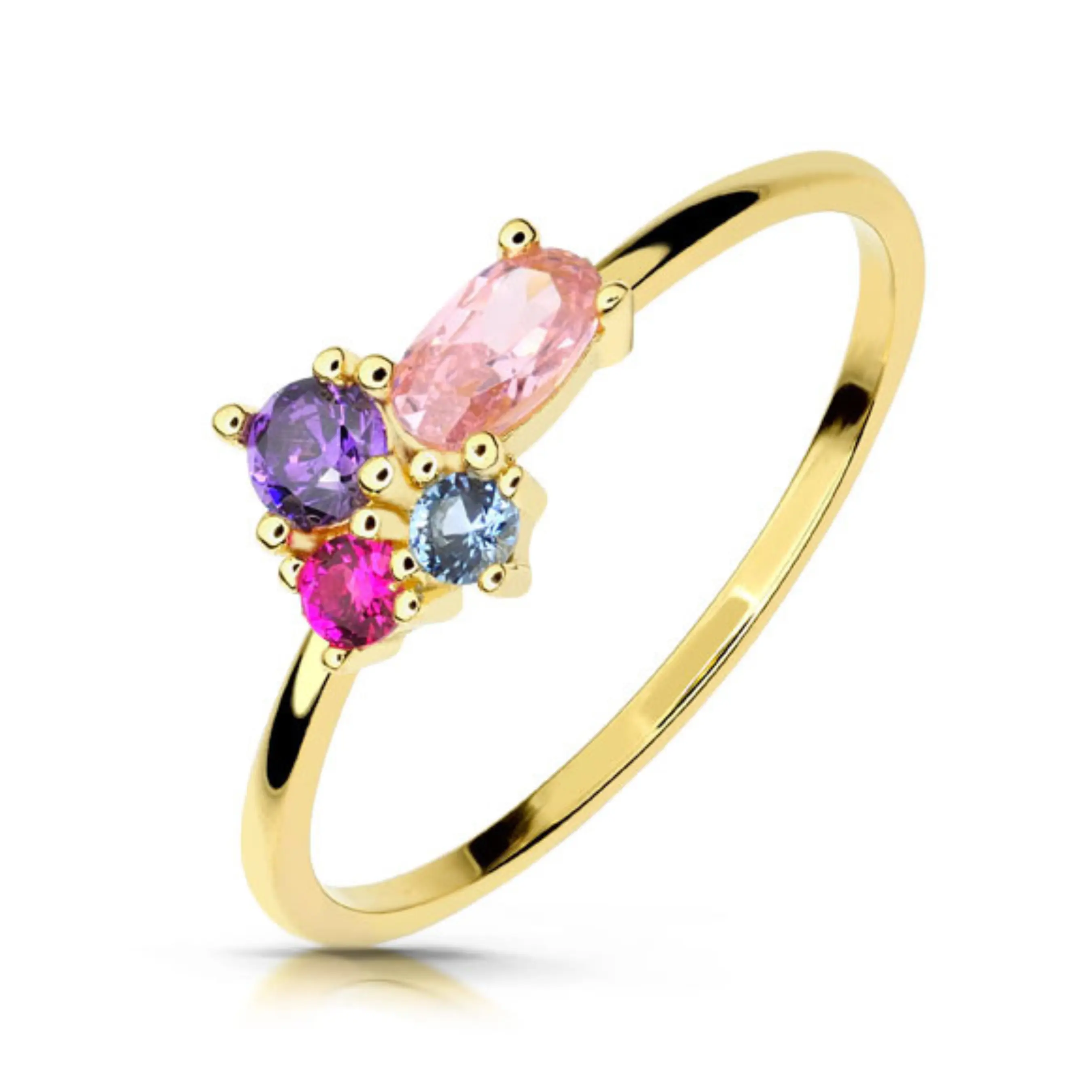 Delikatny złoty pierścionek z kolorowymi cyrkoniami 585