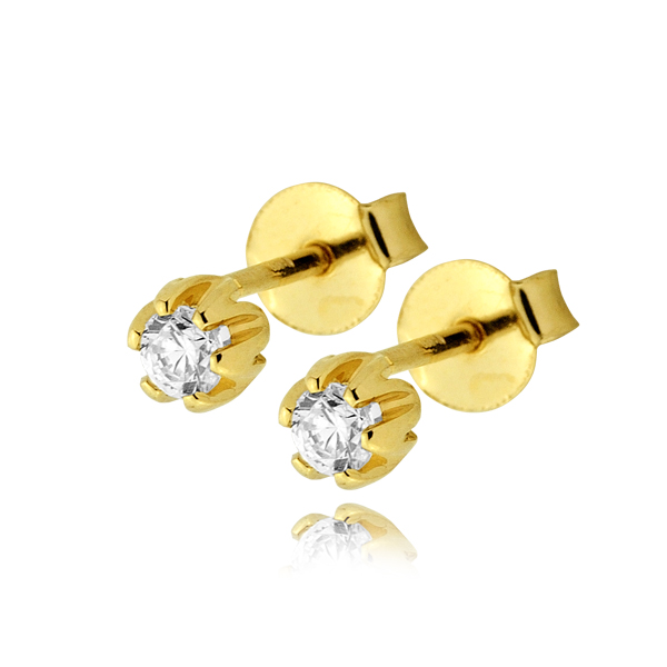 Klasyczne złote kolczyki z cyrkoniami, próba 585