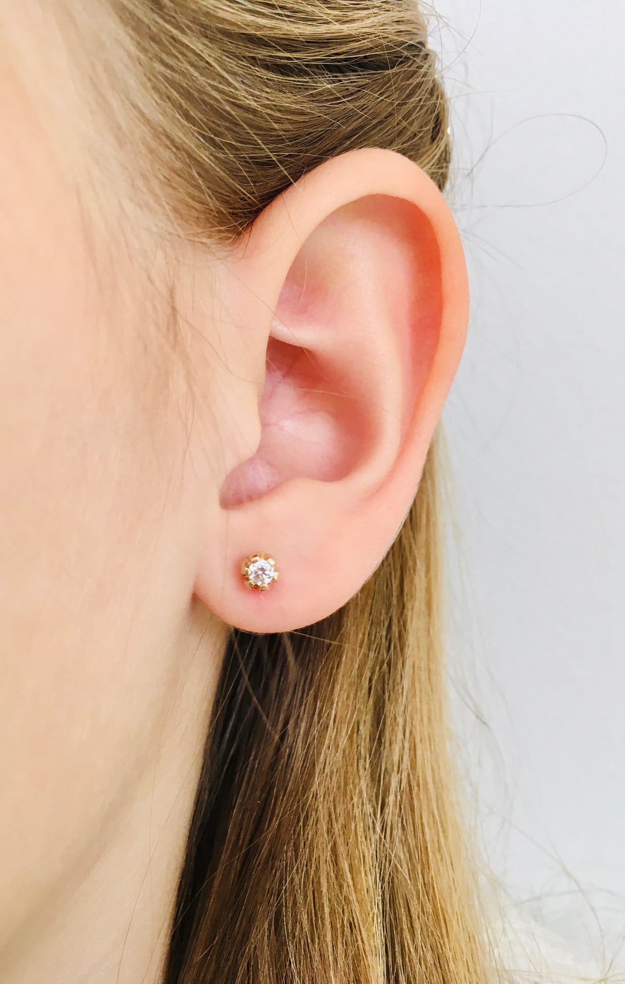 Kamienie zostały oprawione cyrkoniami o średnicy około 3 mm, które pięknie odbijają światło i subtelnie rozświetlają twarz. Dzięki uniwersalnemu charakterowi jest to ponadczasowy model, ceniony za swoją prostotę i elegancję. Polerowana powierzchnia złota dodatkowo podkreśla ich wyjątkowy blask i nadaje im luksusowego wykończenia.
