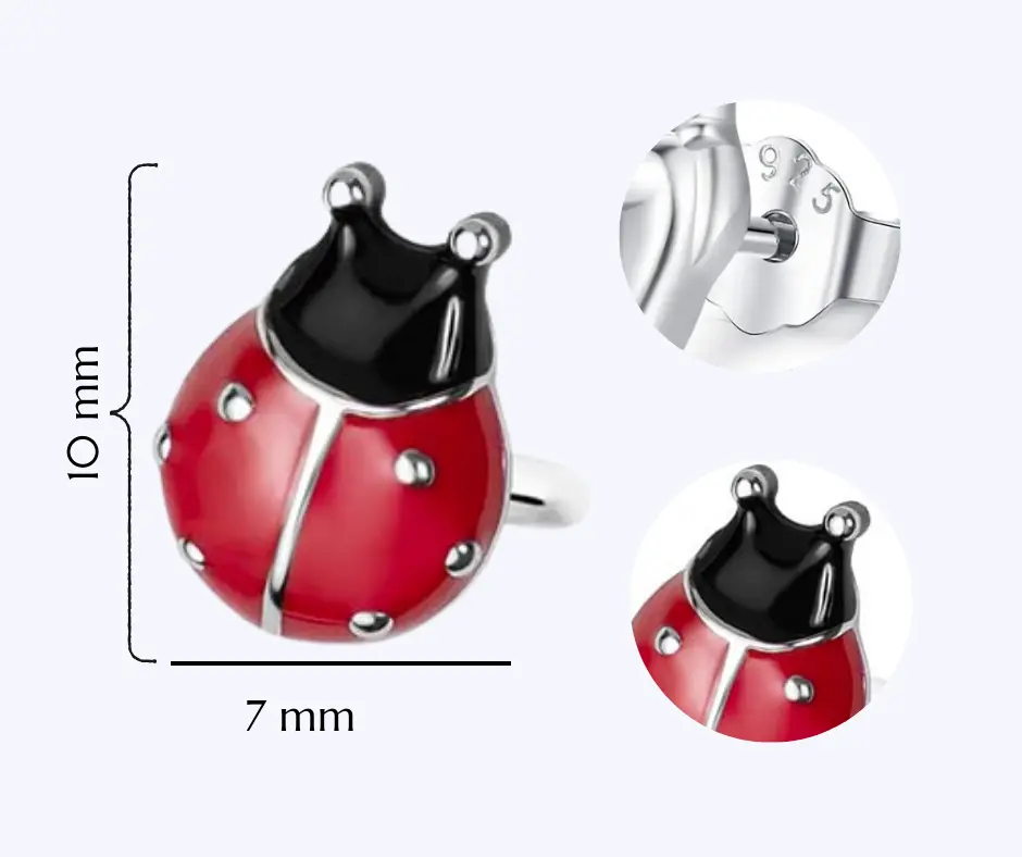 Kolczyki Srebrne Biedronki emalia wkrętki Miraculum