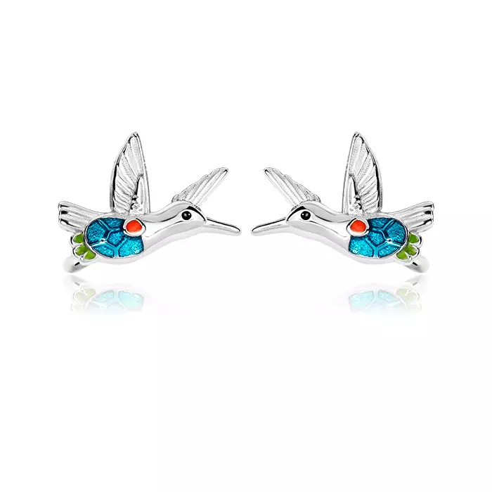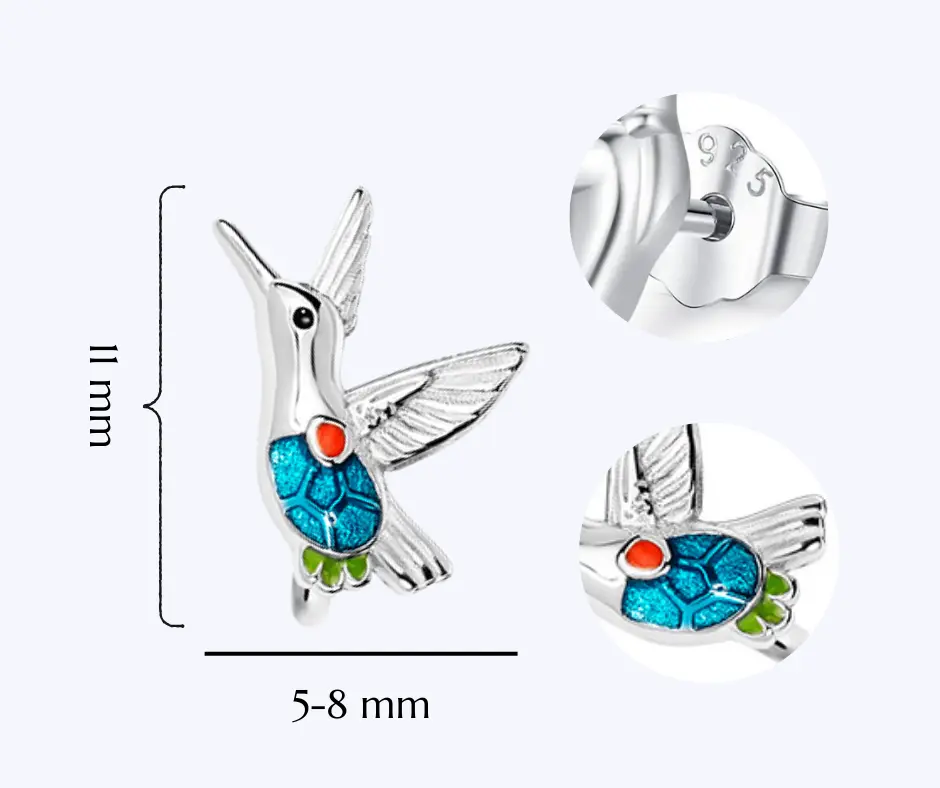 Kolczyki Srebrne Ptaki Kolorowe wkrętki/ Ptaszki/ Koliber