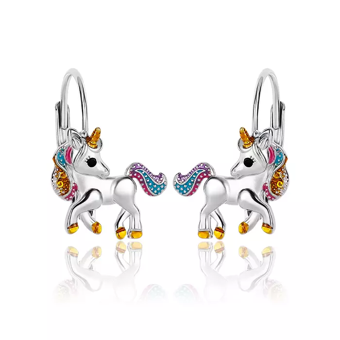 Kolczyki Srebrne Wiszące Jednorożce dla Dziewczynki Angielskie Zapięcie