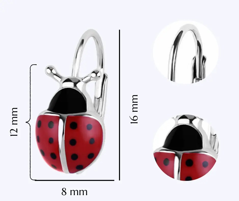 Odkryj urok kolczyków srebrnych biedronek, które zachwycą każde dziecko! Te urocze, śliczne kolczyki dla dzieci zostały starannie wykonane z wysokiej jakości srebra, które jest rodowane, co zapewnia im długotrwały blask i odporność na matowienie. Każda biedronka ma intensywny, czerwony kolor w kropki, dodający radości i energii do każdej stylizacji. Kolczyki są wyposażone w angielskie zapięcie, które zapewnia wygodę noszenia i bezpieczeństwo, dzięki czemu idealnie nadają się dla najmłodszych. Co ważne, nasze kolczyki nie zawierają niklu, co sprawia, że są bezpieczne dla wrażliwej skóry. Wybierz te urocze kolczyki biedronki jako doskonały dodatek do codziennych i odświętnych stylizacji!