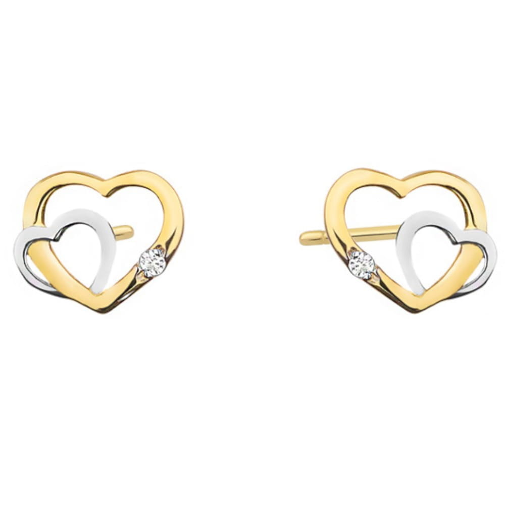 Kolczyki dwa serduszka w dwóch kolorach złota i cyrkonia próba 585