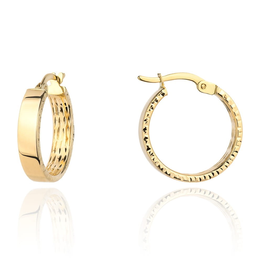 Kolczyki kółka gładkie i diamentowanie na boku 1,8 cm próba 585