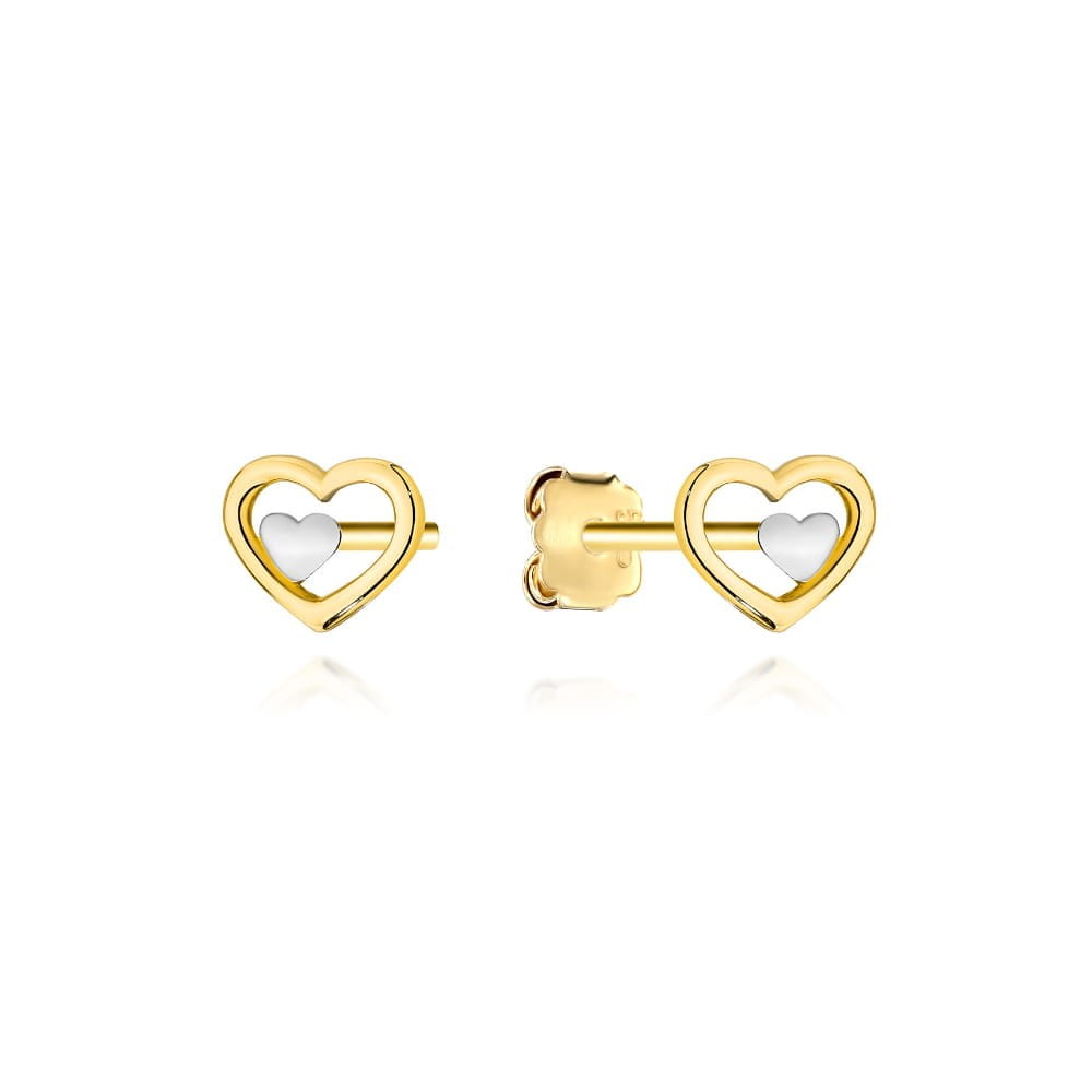 Złote kolczyki serduszko w sercu to wyjątkowa biżuteria damska, która zachwyca subtelnym blaskiem i elegancją. To ponadczasowe kolczyki w kształcie serca, które dzięki ciekawemu połączeniu 2 serc symbolizują miłość, bliskość i więź między dwojgiem ludzi. Delikatne połączenie 2 serc w 2 kolorach złota sprawia, że biżuteria staje się jeszcze bardziej oryginalna, a jednocześnie niezwykle uniwersalna.