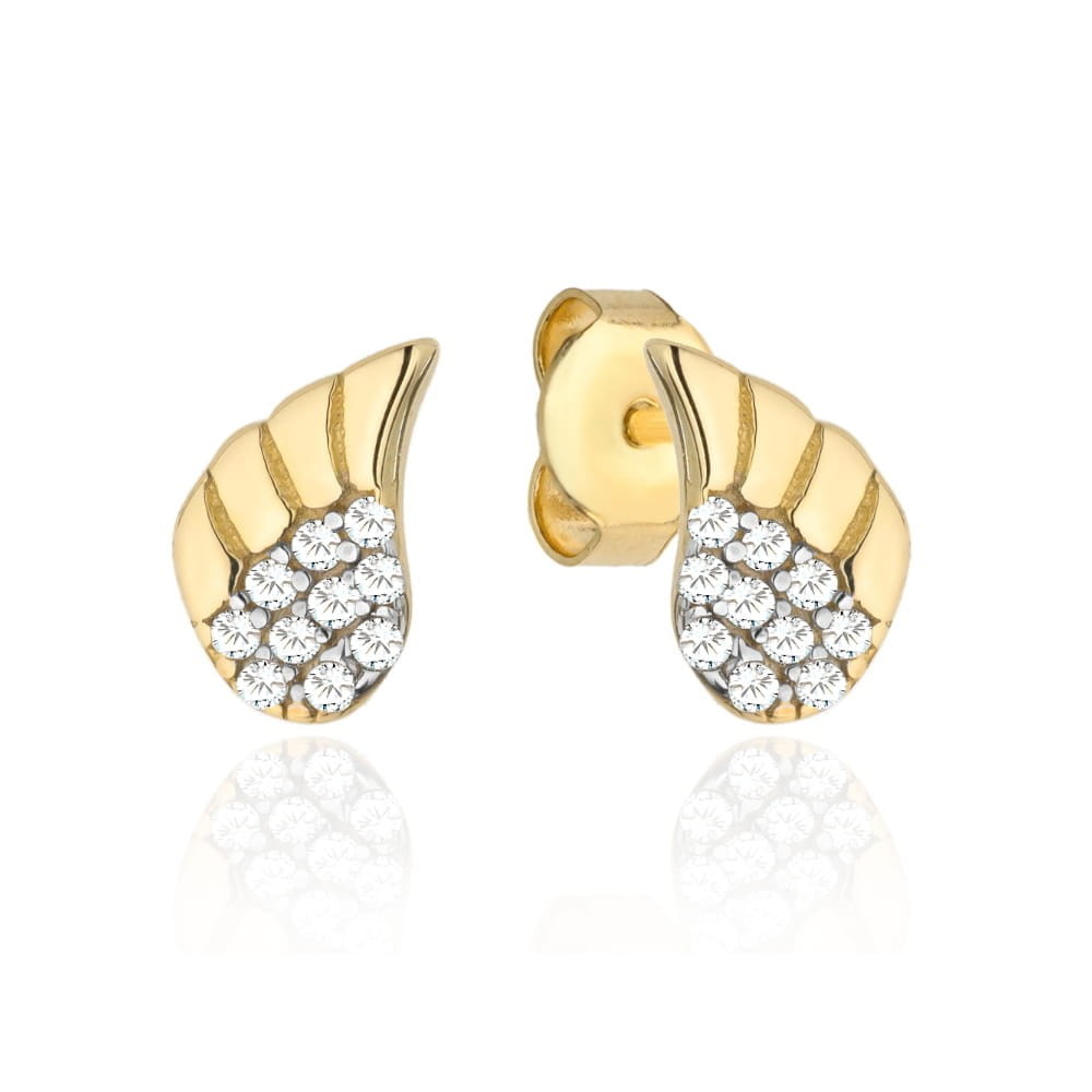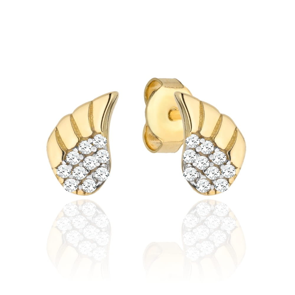 Kolczyki skrzydełka Anioła z cyrkoniami dla dziewczynki próba 585/ Chrzest, Roczek, Komunia