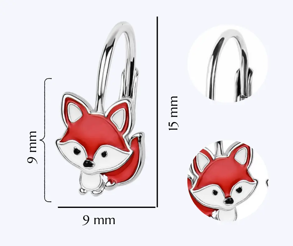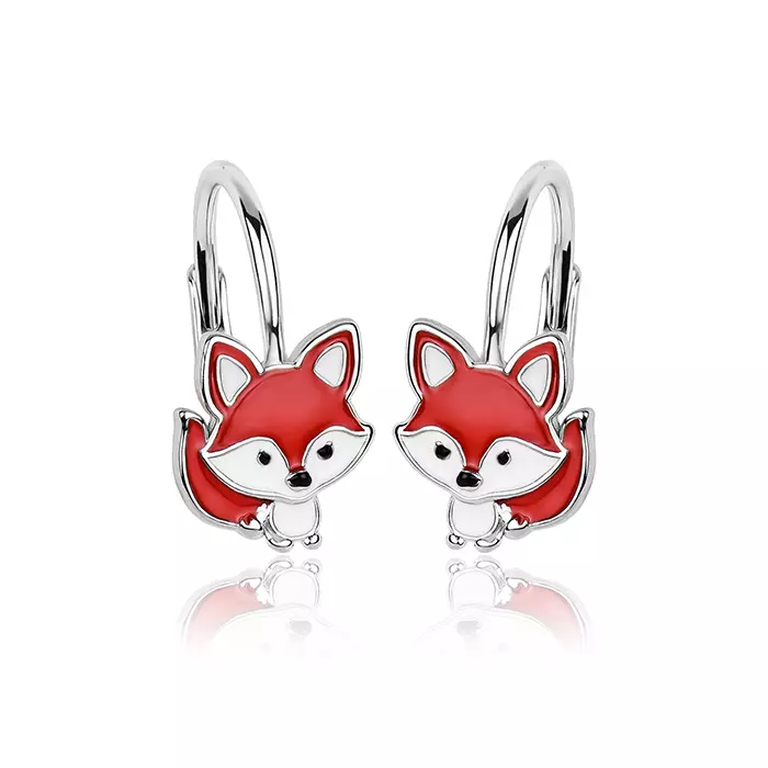 Kolczyki srebrne Liski dla dziewczynki angielskie zapięcie/ Rude liski