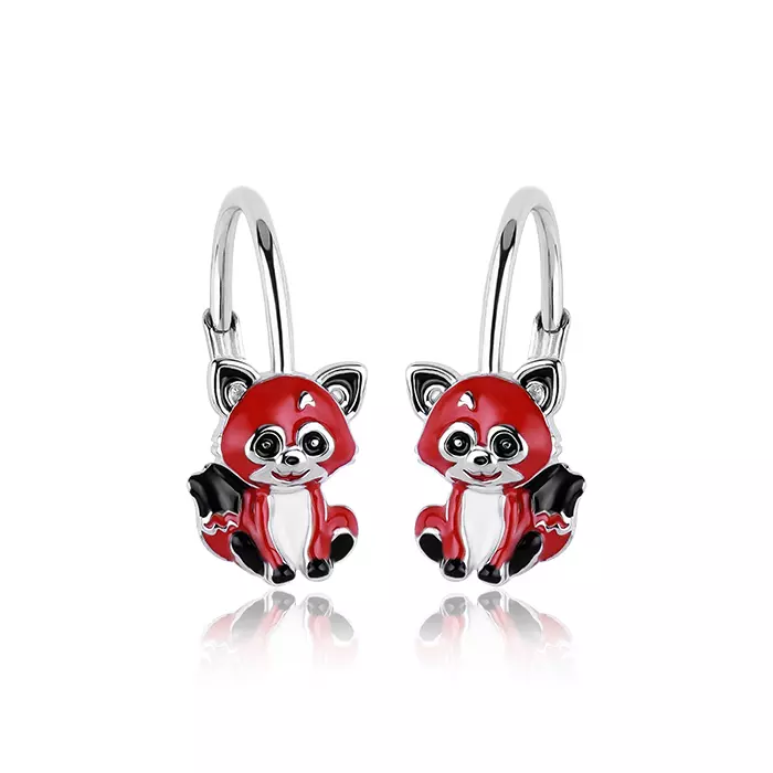 Kolczyki srebrne Panda Czerwona angielskie zapięcie Panda Ruda