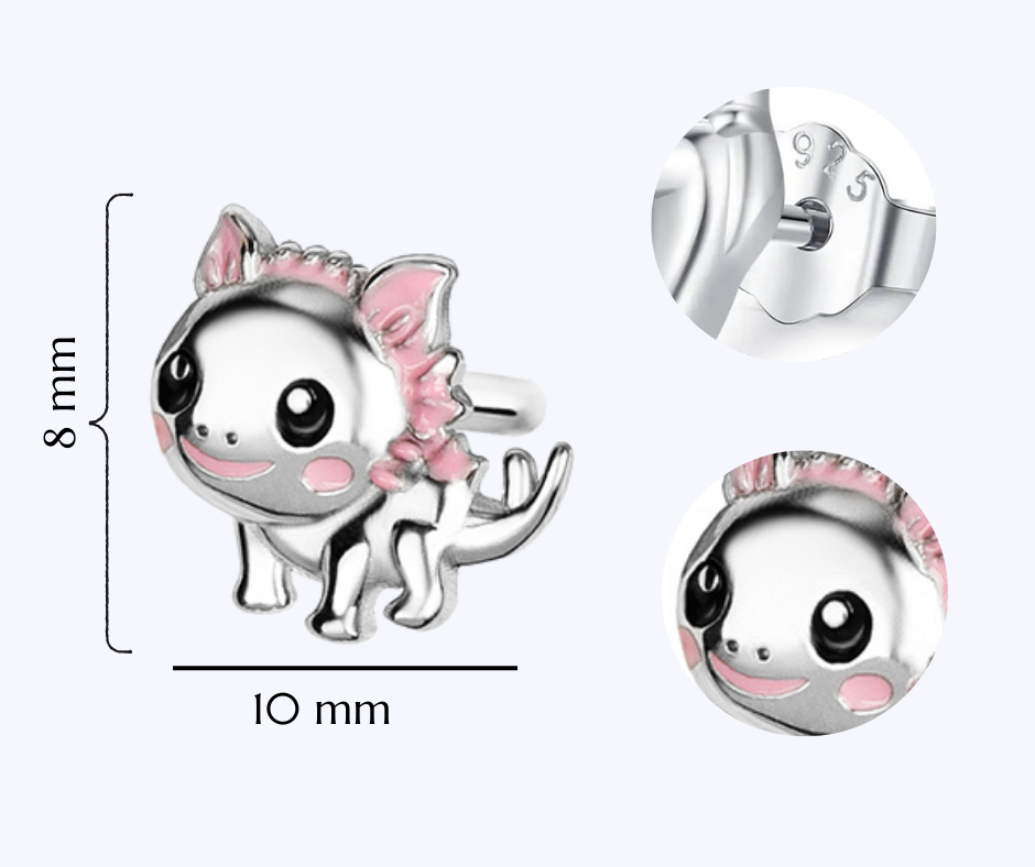 Dlaczego warto wybrać te kolczyki? Przede wszystkim ze względu na ich oryginalny design – aksolotl, znany jako „smok wodny”, symbolizuje delikatność, odwagę i niezwykłą energię, co czyni go idealnym motywem dla dzieci. Kolczyki mają wygodne zapięcie na sztyft, które gwarantuje komfort noszenia, a precyzyjne wykonanie podkreśla dbałość o każdy szczegół.