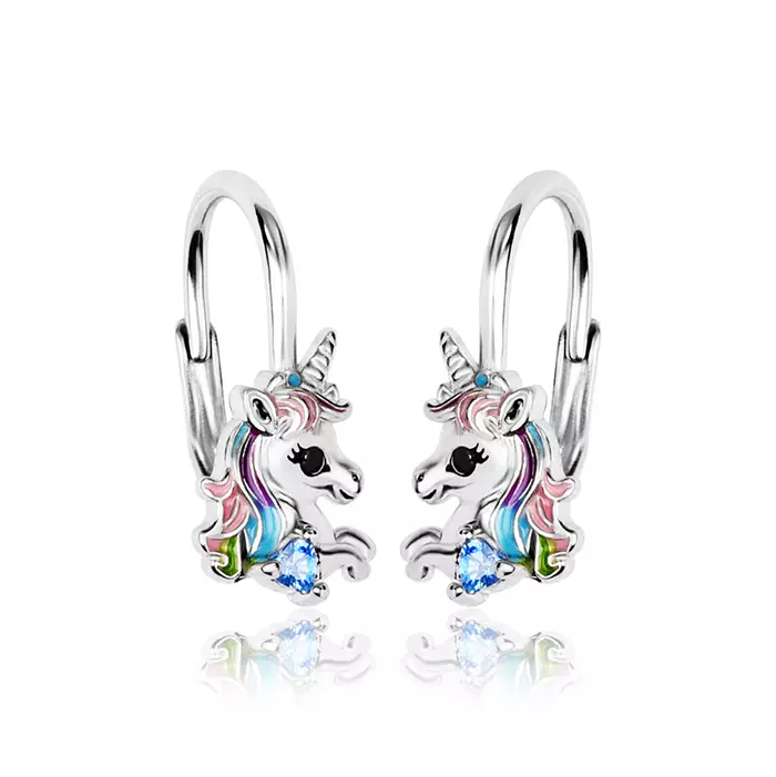 Kolczyki srebrne dla dzieci Jednorożce z cyrkoniami angielskie