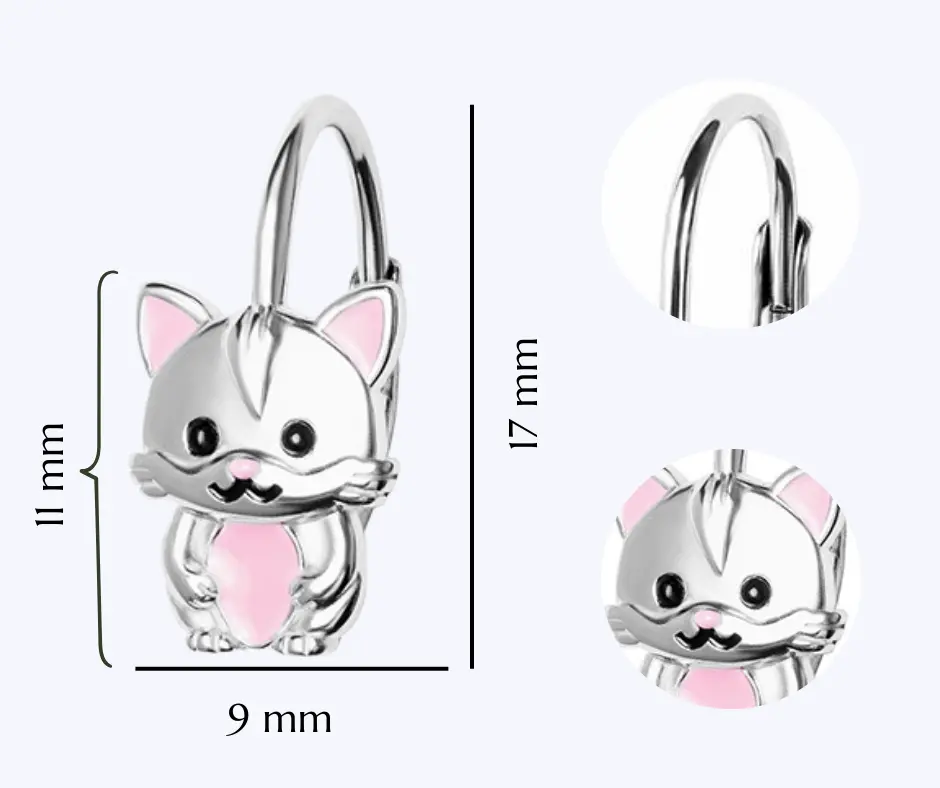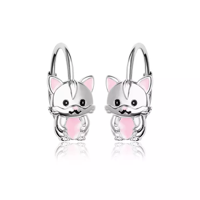 Kolczyki srebrne dla dziewczynki Kotki angielskie zapięcie/ Prezent na urodziny