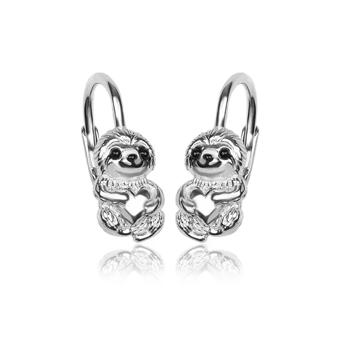Kolczyki srebrne dla dziewczynki Leniwce z serduszkiem angielskie 925
