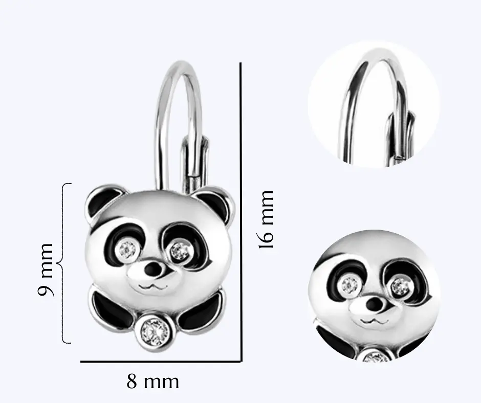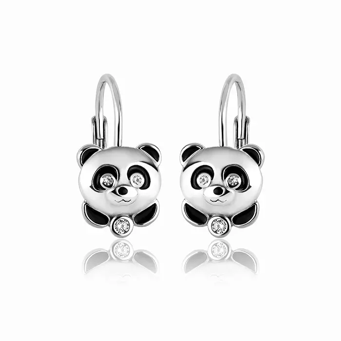 Kolczyki srebrne dla dziewczynki Panda angielskie zapięcie Pandy