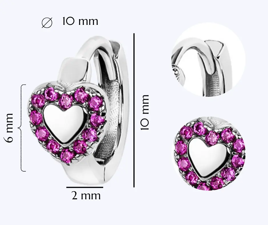 Kolczyki srebrne dla dziewczynki kółka serce z cyrkoniami zapięcie zatrzask