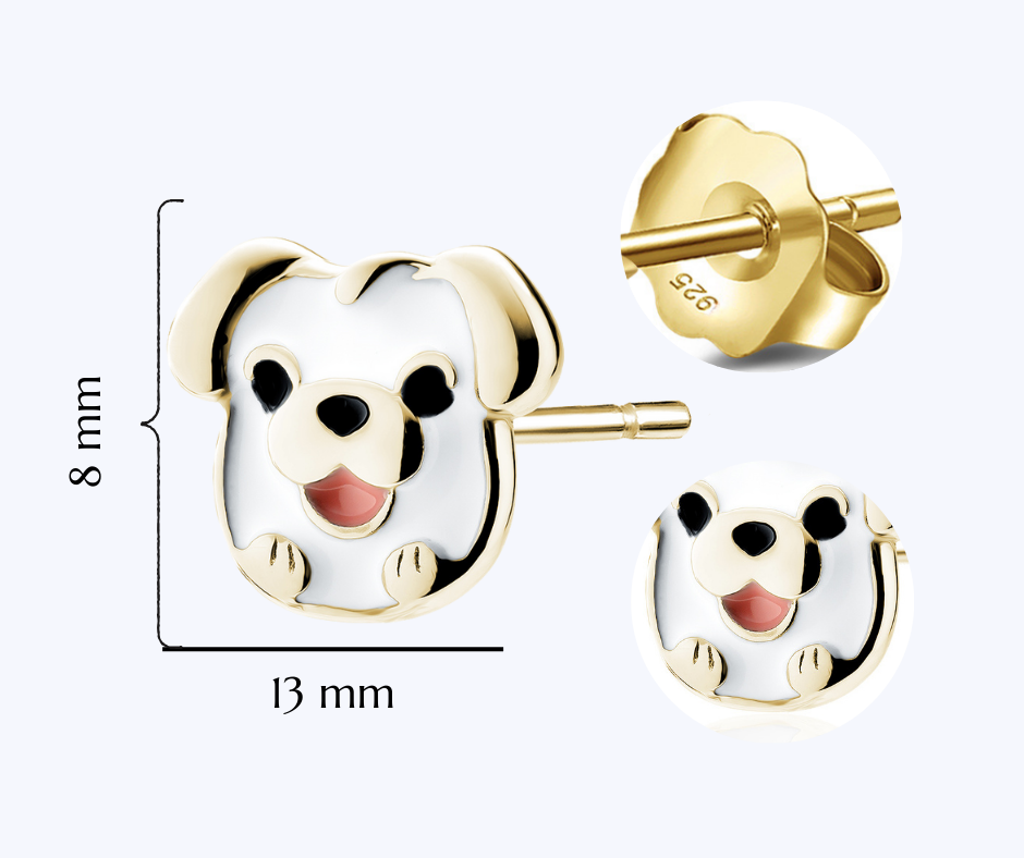 Kolczyki srebrne dla dziewczynki pieski srebro pozłacane sztyft