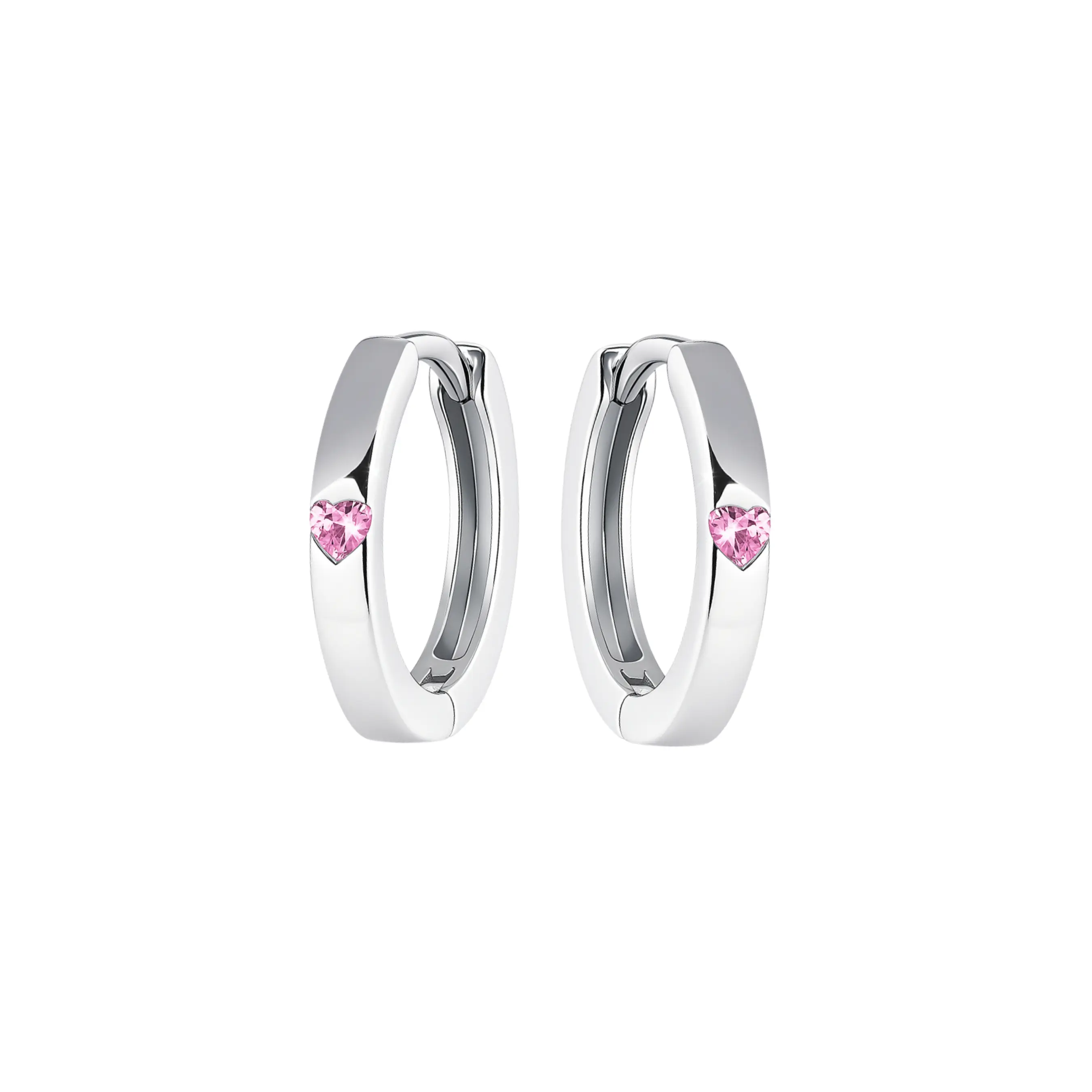Kolczyki srebrne kółeczka z różową cyrkonią zatrzask