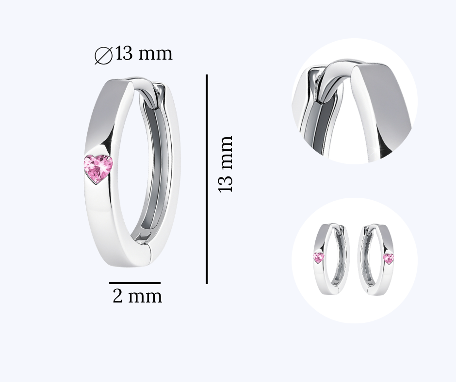 Kolczyki wykonane są ze srebra rodowanego, co zwiększa ich trwałość i chroni przed ciemnieniem. Zapięcie typu zatrzask zapewnia wygodę oraz bezpieczeństwo noszenia, co jest szczególnie ważne przy wyborze biżuterii dla najmłodszych. Delikatna cyrkonia w różowym kolorze dodaje całości dziewczęcego uroku, nie dominując przy tym formy kolczyków.