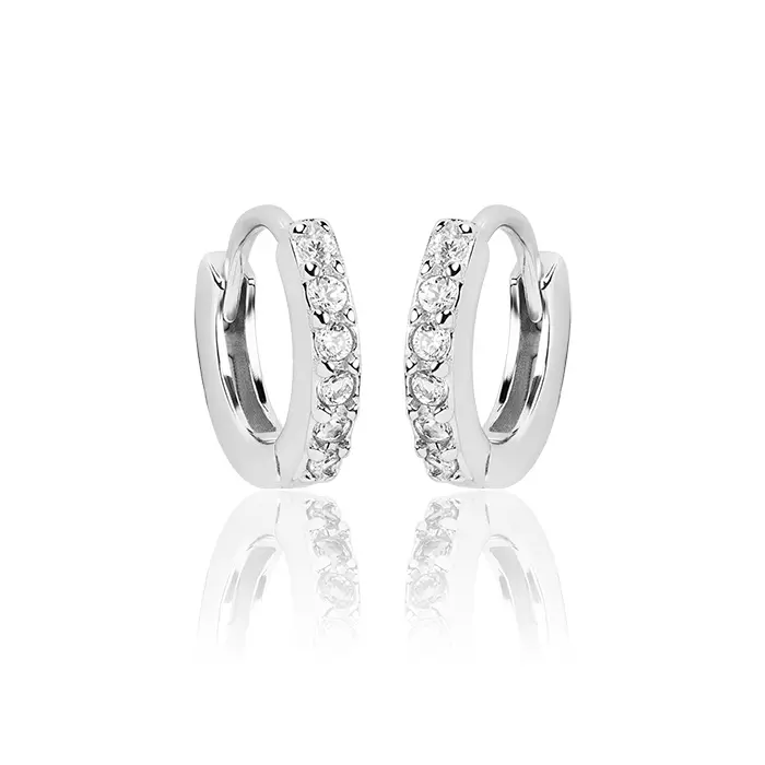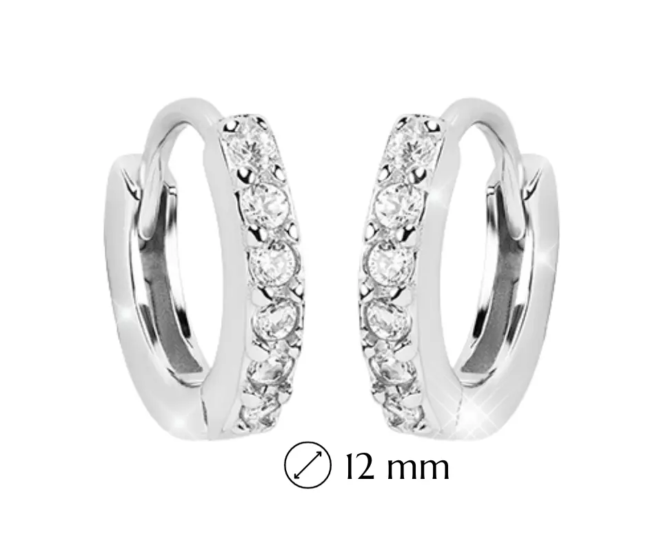 Kolczyki srebrne kółka białe cyrkonie dla dziewczynki zatrzask