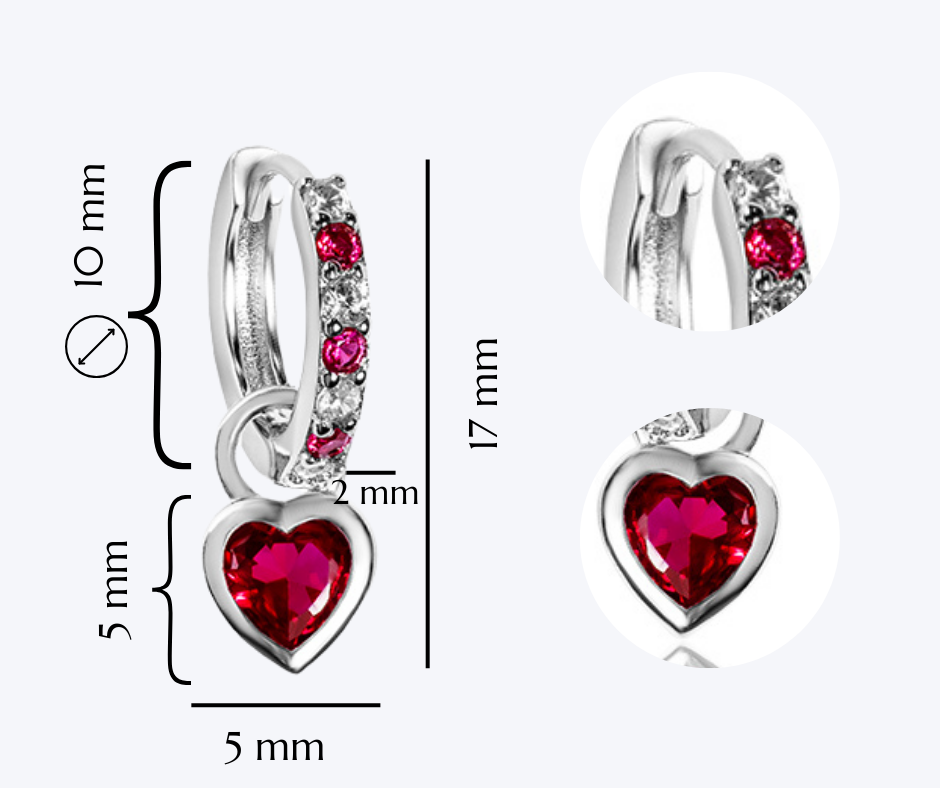 Srebrne kolczyki z piękną zawieszką w kształcie serca, wykonane z najlepszej jakości srebra rodowanego próby 925, oprawione różowymi i białymi cyrkoniami. Kolczyki posiadają zapięcie typu zatrzask. Biżuteria wykonana została z wielką starannością i dokładnością. Te niepowtarzalne kolczyki stanowią doskonały prezent dla bliskiej osoby, z wielu różnych okazji np: urodzin, imienin, dodając magii i czaru każdej stylizacji. Kolczyki zostały zabezpieczone procesem rodowania, co sprawia, że kolczyki pięknie się błyszczą i cechują się dużą odpornością na uszkodzenia i niekorzystne oddziaływanie środowiska. Biżuteria nie zawiera niklu, przez co nie uczula i nie powoduje reakcji alergicznej.