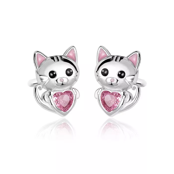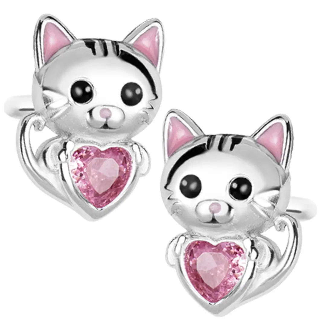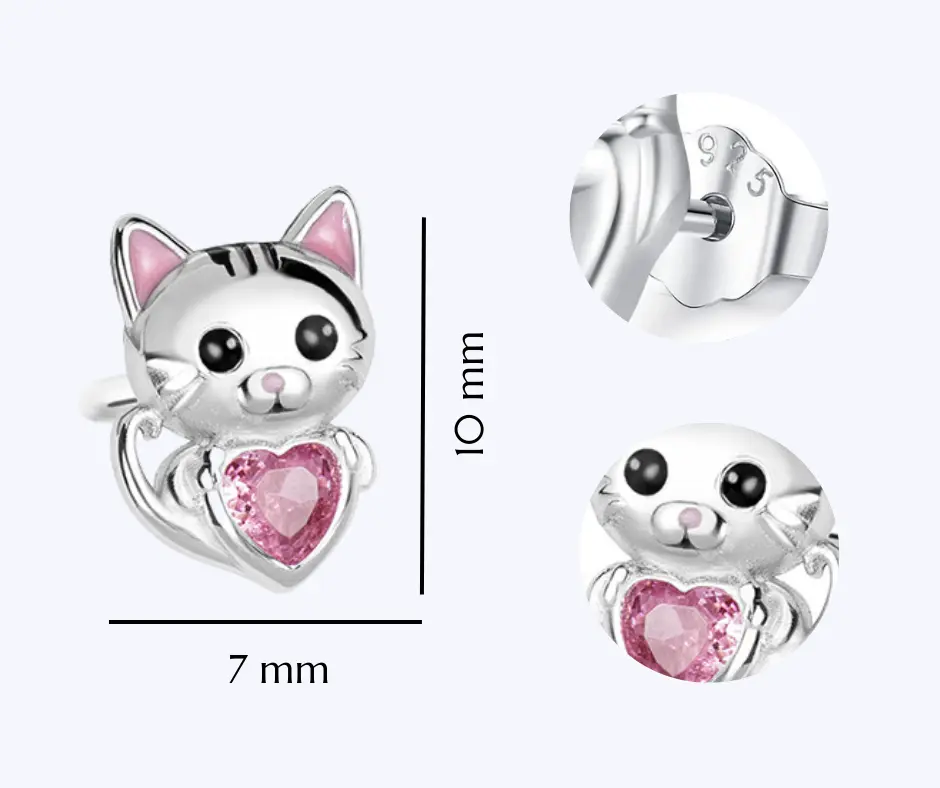 Srebrne kolczyki kotki dla dziewczynki, wykonane ze srebra próby 925, oprawione różową cyrkonią, która dodaje blasku. Biżuteria posiada zapięcie typu sztyft/wkrętki, bardzo praktyczne i bezpieczne. Wyróżnia się dużą stabilnością i wygodą noszenia. Kolczyki w kształcie kotów to urocza i zabawna biżuteria, która cieszy się dużą popularnością wśród dzieci, lubiących te puchate zwierzątka. Dzięki tym kolczykom dziecko z pewnością wyrazi miłość do ukochanego czworonoga. Biżuteria nie zawiera niklu, przez co nie uczula i nie powoduje reakcji alergicznej.