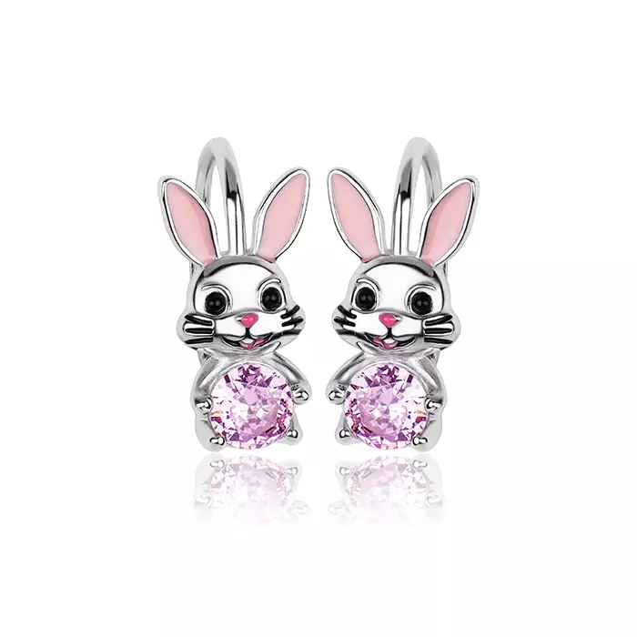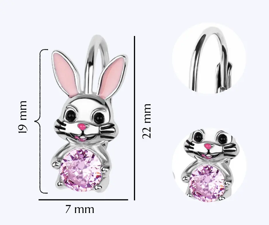 Kolczyki srebrne króliczki z różową cyrkonią angielskie zapięcie