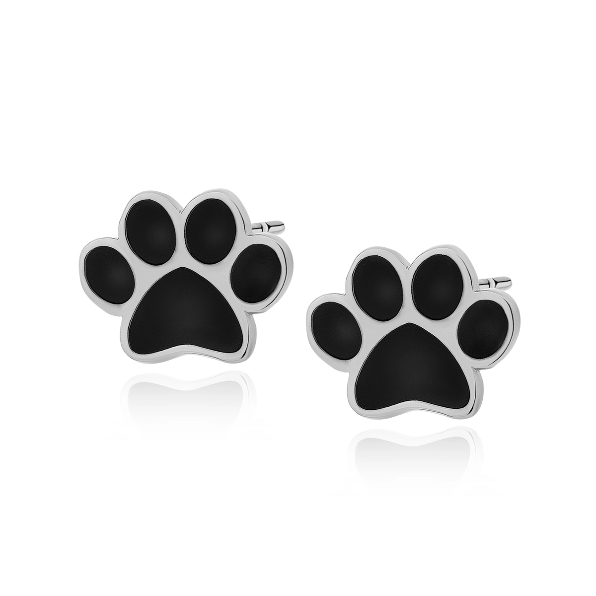 Kolczyki srebrne psie łapki, wykonane zostały ze srebra próby 925, pokryte czarną emalią. Kolczyki posiadają praktyczne zapięcie typu sztyft. Kolczyki w kształcie łapek psa to zabawny i uroczy motyw, który jest popularny wśród miłośniczek zwierząt. Dzięki tym kolczykom możesz wyrazi miłość do ukochanego czworonoga. Biżuteria ta jest doskonałą propozycją na prezent dla dzieci i kobiet z okazji urodzin, imienin lub świąt. Stworzone z niezwykłą starannością i dbałością o szczegóły. Kolczyki nie zawierają niklu, przez co nie uczulają i nie powodują reakcji alergicznej.