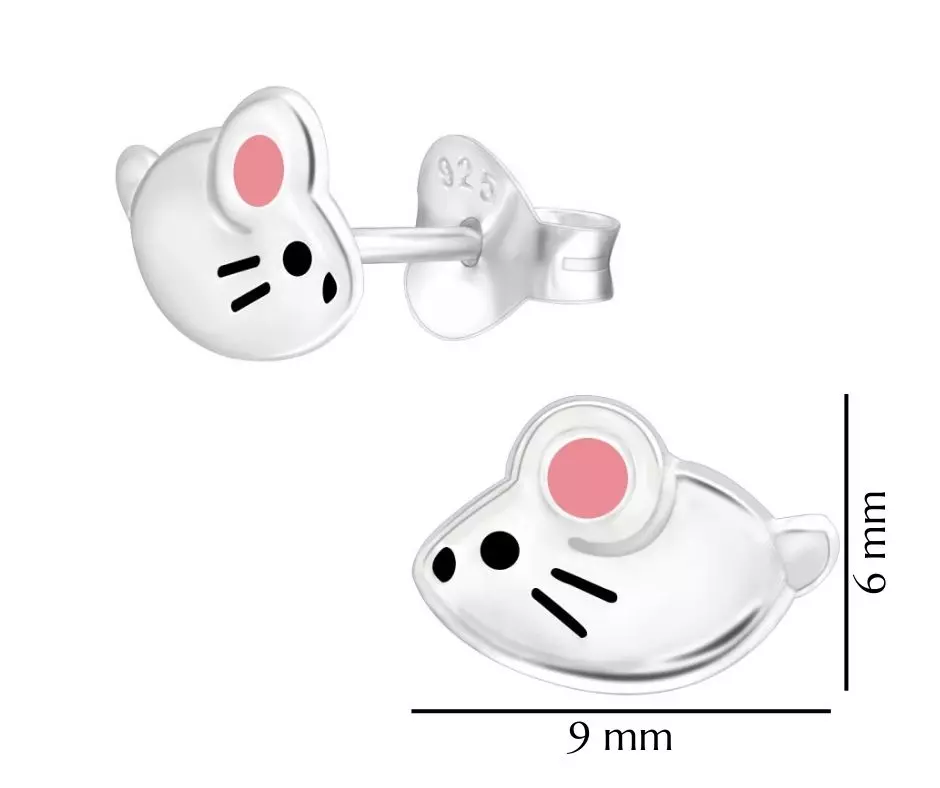 Kolczyki srebrne myszki dla dziewczynki wkrętki