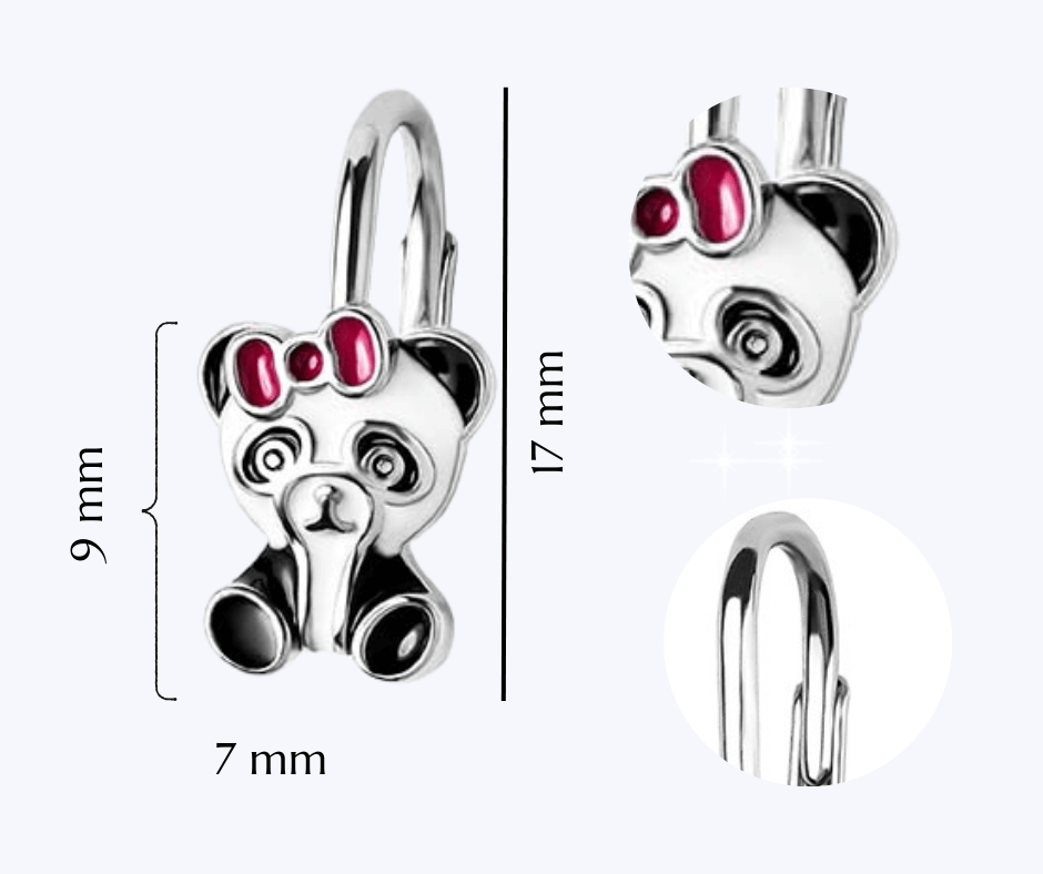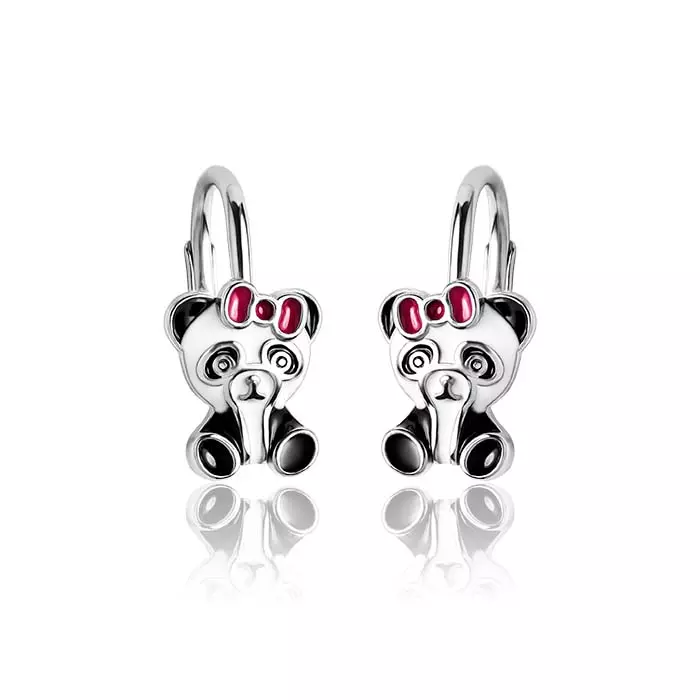 Kolczyki srebrne pandy dla dziewczynki angielskie zapięcie 925
