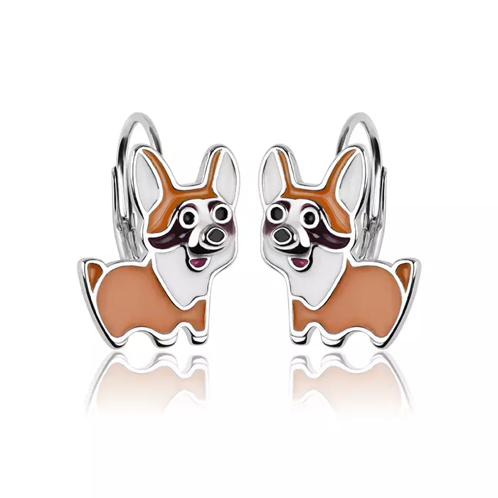 Kolczyki srebrne pies Corgi dla dziewczynki Angielskie zapięcie