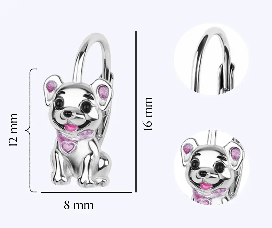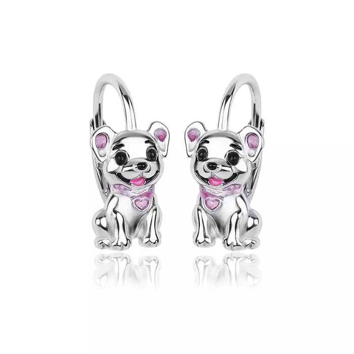 Kolczyki srebrne pieski dla dziewczynki angielskie zapięcie rodowane