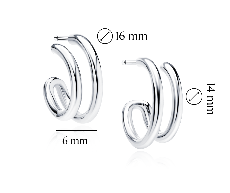 Piękne kolczyki srebrne podwójne kółka wykonane z najlepszej jakości srebra próby 925. Biżuteria posiada zapięcie typu sztyft, bardzo praktyczne i wygodne. Ich wyjątkowy, niepowtarzalny design sprawia, że kolczyki będą pasowały do każdej stylizacji. Kolczyki podwójne kółka srebrne to efektowna i zarazem elegancka biżuteria, która prezentuje się niezwykle wyjątkowo. Doskonale sprawdzi się jako prezent dla wyjątkowej osoby na wiele okazji. Biżuteria srebrna z powłoką rodowania zapobiega ciemnieniu i matowieniu. Chroni biżuterię przed uszkodzeniami i zarysowaniami. Biżuteria rodowana zachowuje swój piękny blask i kolor. Nie zawiera niklu, nie uczula i nie powoduje alergii.
