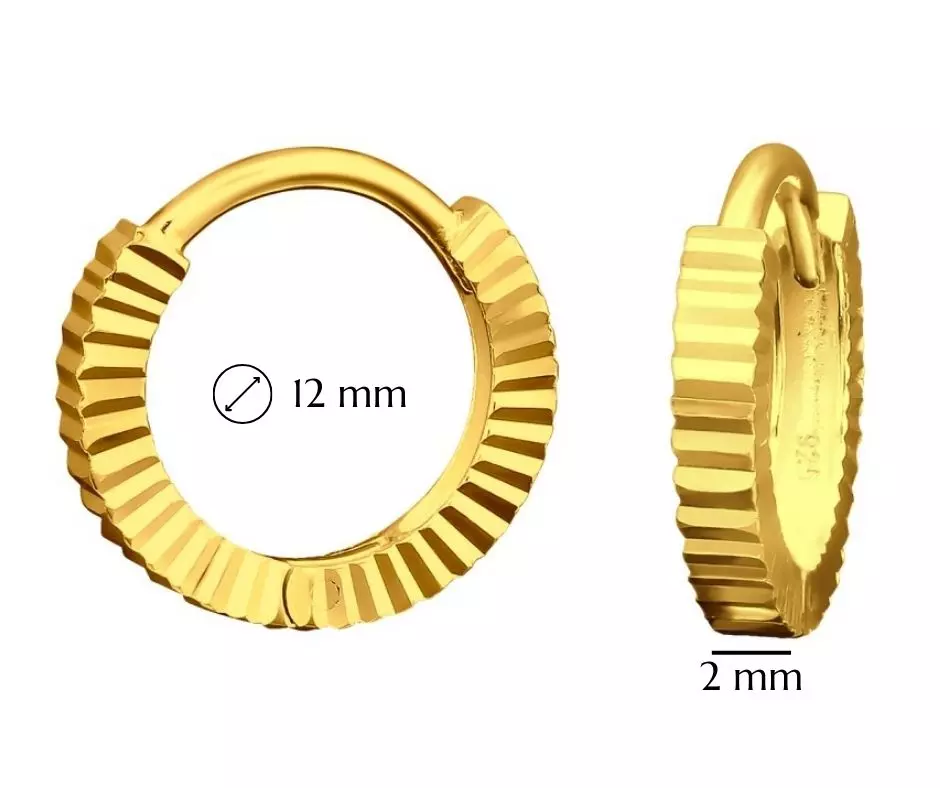 Piękne kolczyki srebrne pozłacane kółka diamentowe wykonane z najlepszej jakości srebra próby 925, złocone 14 karatowym złotem. Biżuteria posiada zapięcie typu zatrzask, bardzo praktyczne i wygodne. Ich wyjątkowy, niepowtarzalny design sprawia, że kolczyki będą pasowały do każdej stylizacji. Kolczyki kółka diamentowe pozłacane to efektowna i zarazem elegancka biżuteria, która prezentuje się niezwykle wyjątkowo. Doskonale sprawdzi się jako prezent dla wyjątkowej osoby na wiele okazji. Biżuteria nie zawiera niklu, przez co nie uczula i nie powoduje reakcji alergicznej.