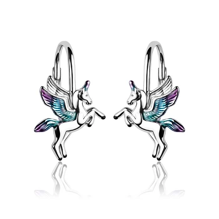 Kolczyki srebrne wiszące jednorożce dla dziewczynki angielskie 925