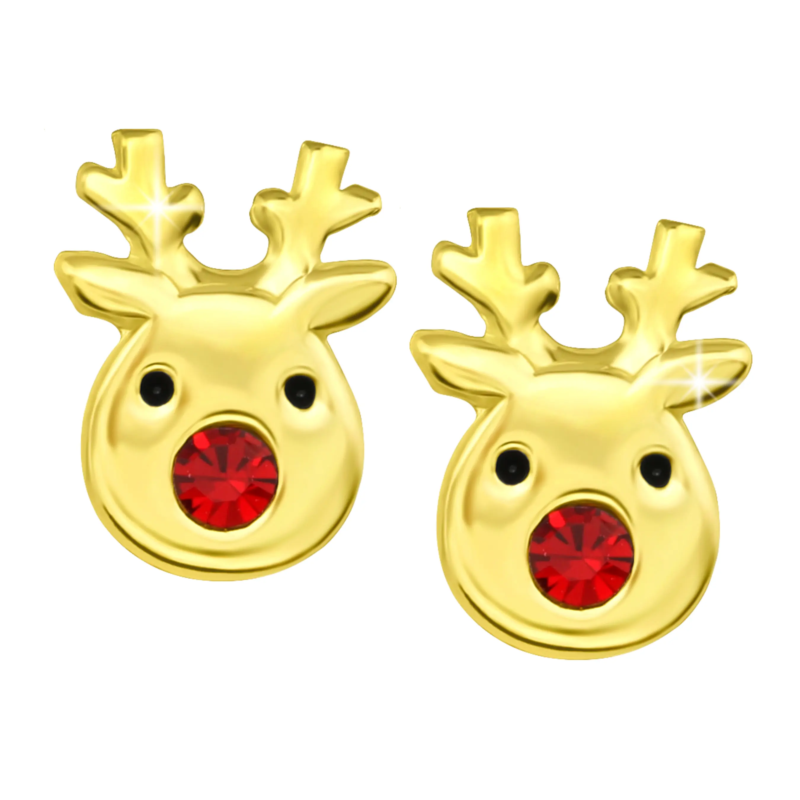 Kolczyki świąteczne dla dziewczynki Renifer srebro pozłacane