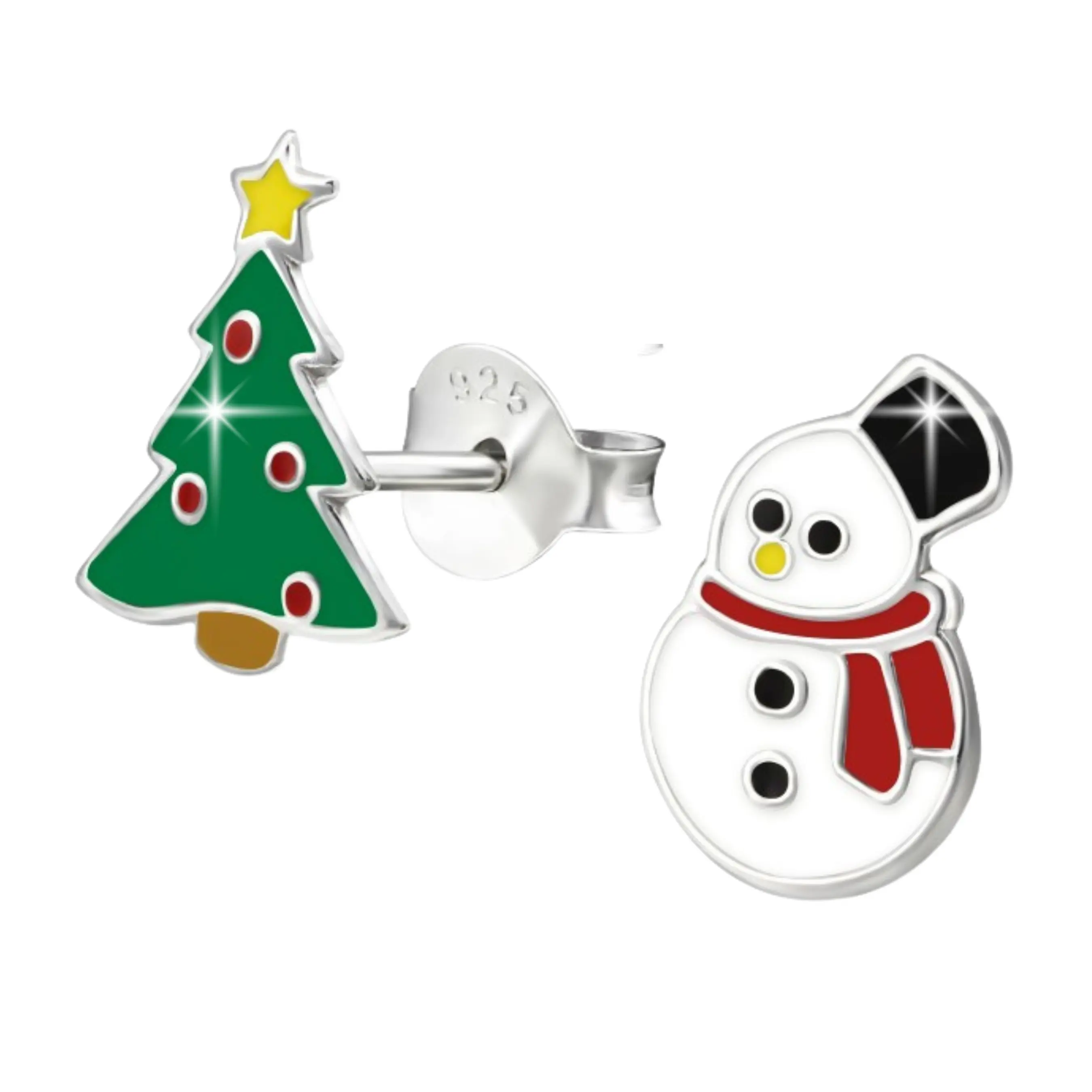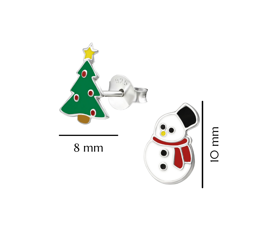 Kolczyki świąteczne dla dziewczynki bałwan i choinka sztyft
