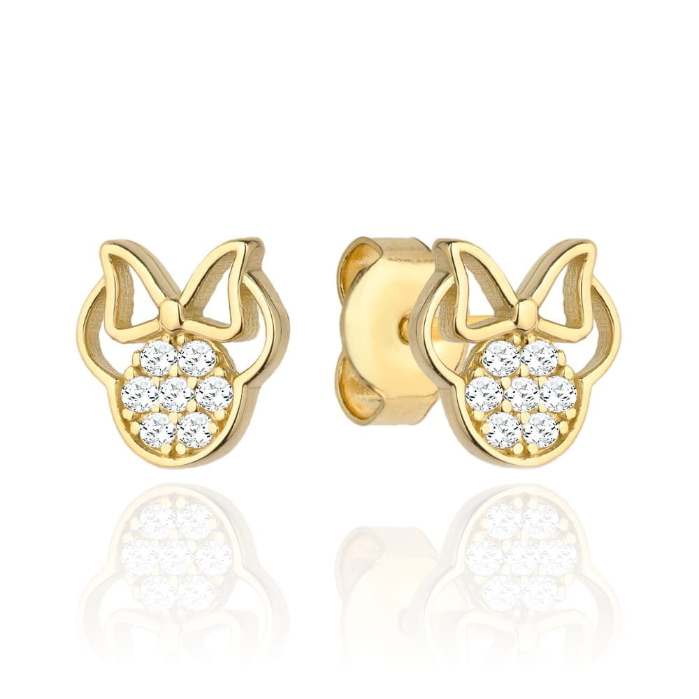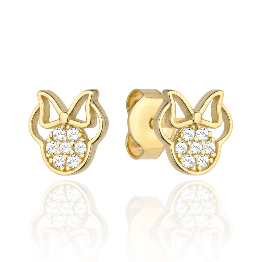 Kolczyki złota myszka z kokardą i cyrkoniami